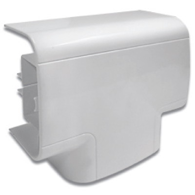 Тройник (т-образный отвод) для коробов 140х50. Назначение: декоративное оформление мест Т-образного соединения кабельных коробов. Характеристики: материал накладки – АБС-пластик; материал базы и разделителей – ПНД; на базе имеются 4 отверстия для монтажа к стене крепежом диаметром до 3 мм. Комплект поставки: внешняя декоративная накладка - 1 шт.; внутренняя база с разделителями - 1 шт.; дополнительный (двухуровневый) разделитель - 1 шт.; адаптеры для канала 70х22 мм - 3 шт.; заглушка отвода - 1 шт. Цвет белый