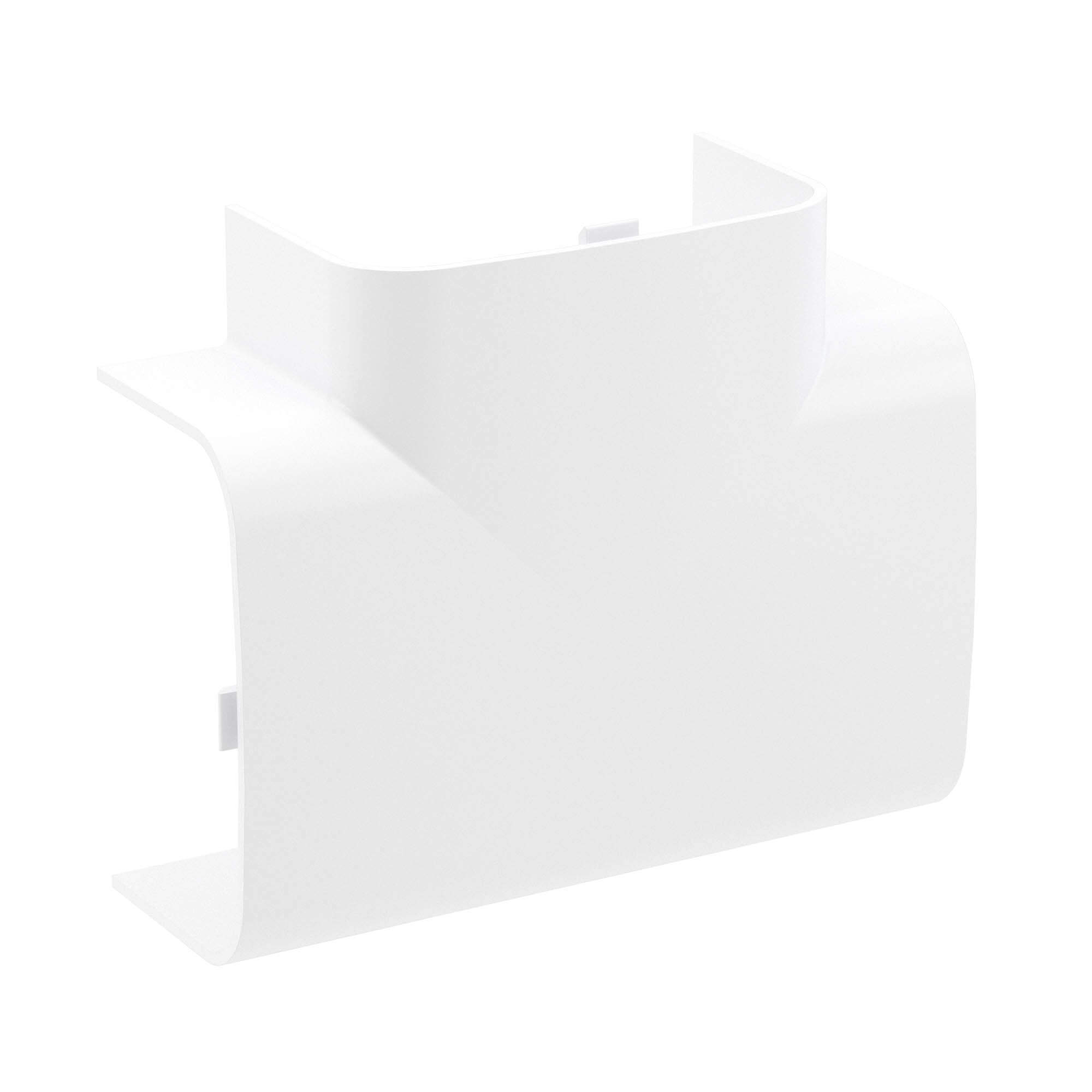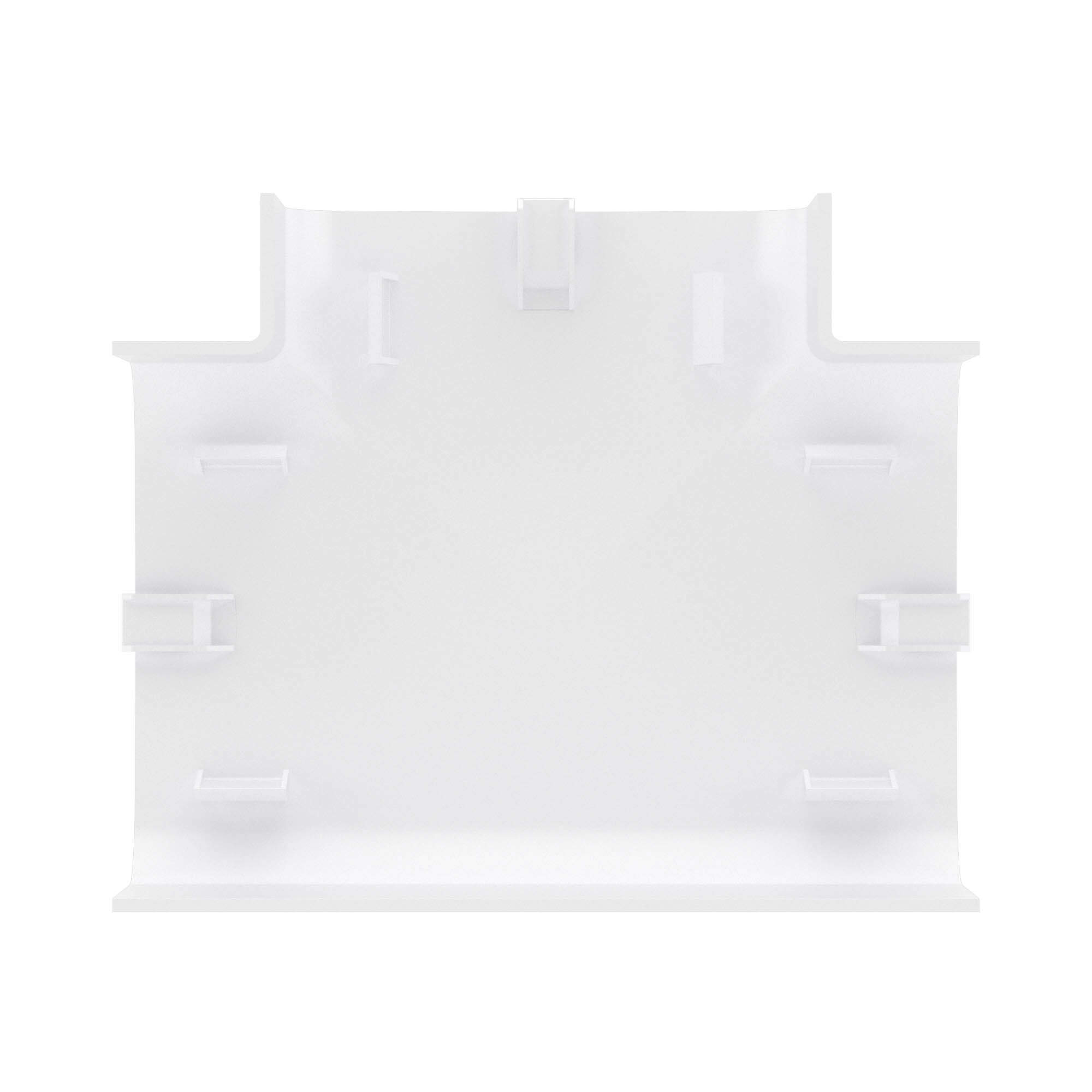 Тройник используется для маскировки мест Т-образных стыков. Аксессуар совместим с кабель-каналами 90х50 мм. Материал: накладка – АБС-пластик; база и разделители – ПП. Цвет-белый.