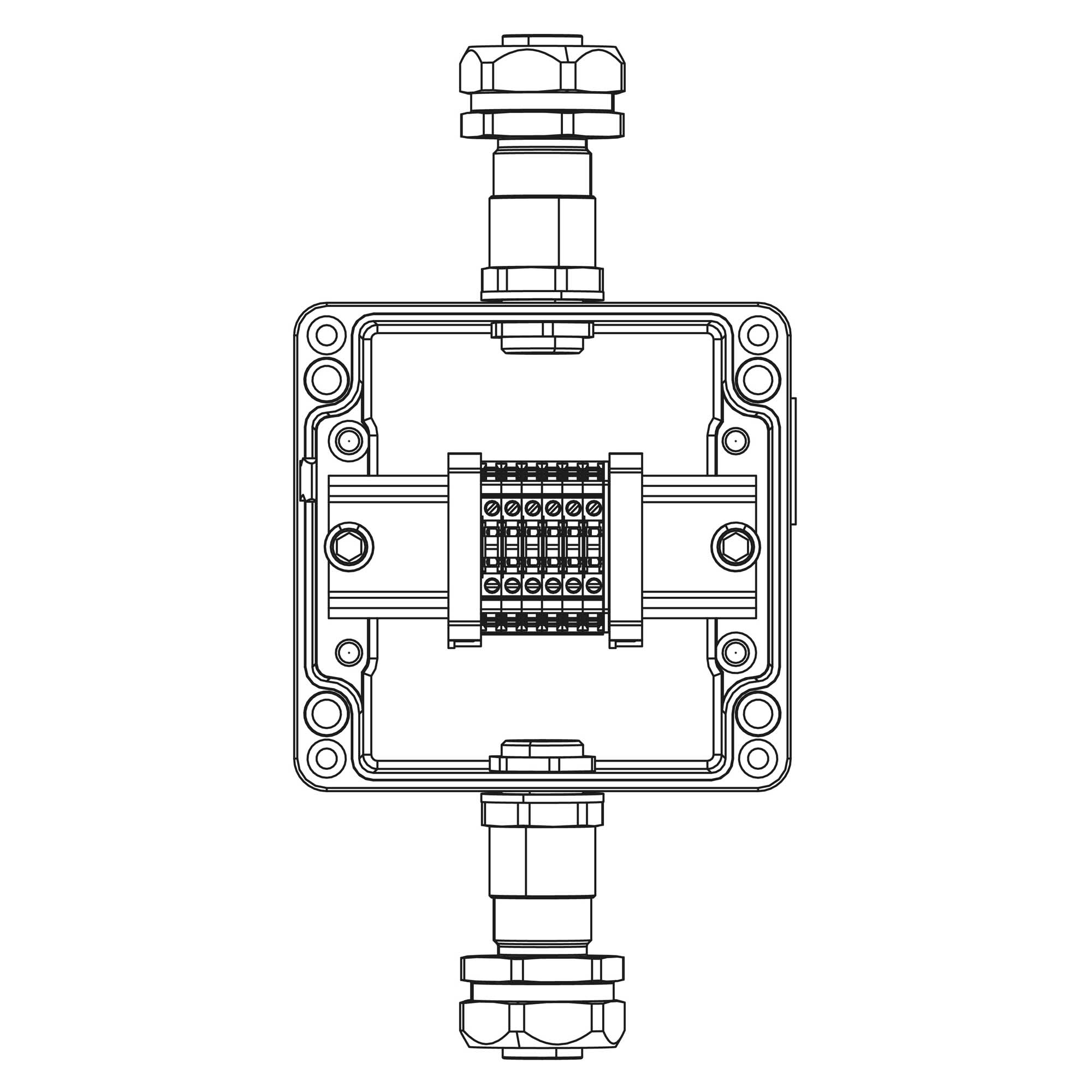 Взрывозащищенная клеммная коробка из алюминия TBE - A - 12 - (6xCBC.2) - 1xKAEPM2MHK - 20(A) - 1xKAEPM2MHK - 20(C)1Ex e IIC Т5 Gb / Ex tb IIIC T95°C Db IP66 Un=500 В, In=23 А Взрывозащищенная клеммная коробка из алюминия 120x120x90мм 1Ex e IIC Т5 Gb / Ex tb IIIC T95°C Db IP66 Температурный режим Т5 40°C Количество клемм: CBC.2 6 шт. Ток А Вводы Сторона А: Универсальный кабельный ввод серии КАЕРМ для бронированного и небронированного кабеля М20х1,5 d:5,8 - 12мм. Dn:20. Никелированная латунь IP66/IP68 1 шт. Сторона C: Универсальный кабельный ввод серии КАЕРМ для бронированного и небронированного кабеля М20х1,5 d:5,8 - 12мм. Dn:20. Никелированная латунь IP66/IP68 1 шт.