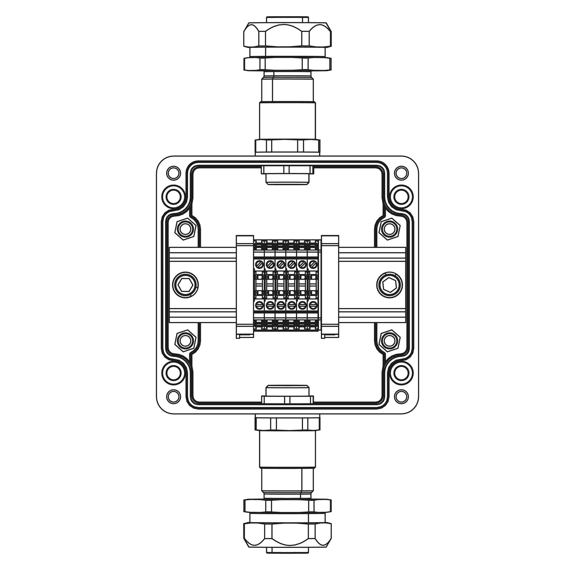 Взрывозащищенная клеммная коробка из полиэстера TBE - P - 03 - (6xCBC.2) - 1xKAEPM2MHK - 20(A) - 1xKAEPM2MHK - 20(C)1Ex e IIC Т5 Gb / Ex tb IIIC T95°C Db IP66/КЗ Un=500 В, In=23 А Взрывозащищенная клеммная коробка GRP 120x120x90мм 1Ex e IIC Т5 Gb / Ex tb IIIC T95°C Db IP66 Температурный режим Т5 40°C Кольца заземления Количество клемм: CBC.2 6 шт. Ток А Вводы Сторона А: Универсальный кабельный ввод серии КАЕРМ для бронированного и небронированного кабеля М20х1,5 d:5,8 - 12мм. Dn:20. Никелированная латунь IP66/IP68 1 шт. Сторона C: Универсальный кабельный ввод серии КАЕРМ для бронированного и небронированного кабеля М20х1,5 d:5,8 - 12мм. Dn:20. Никелированная латунь IP66/IP68 1 шт.