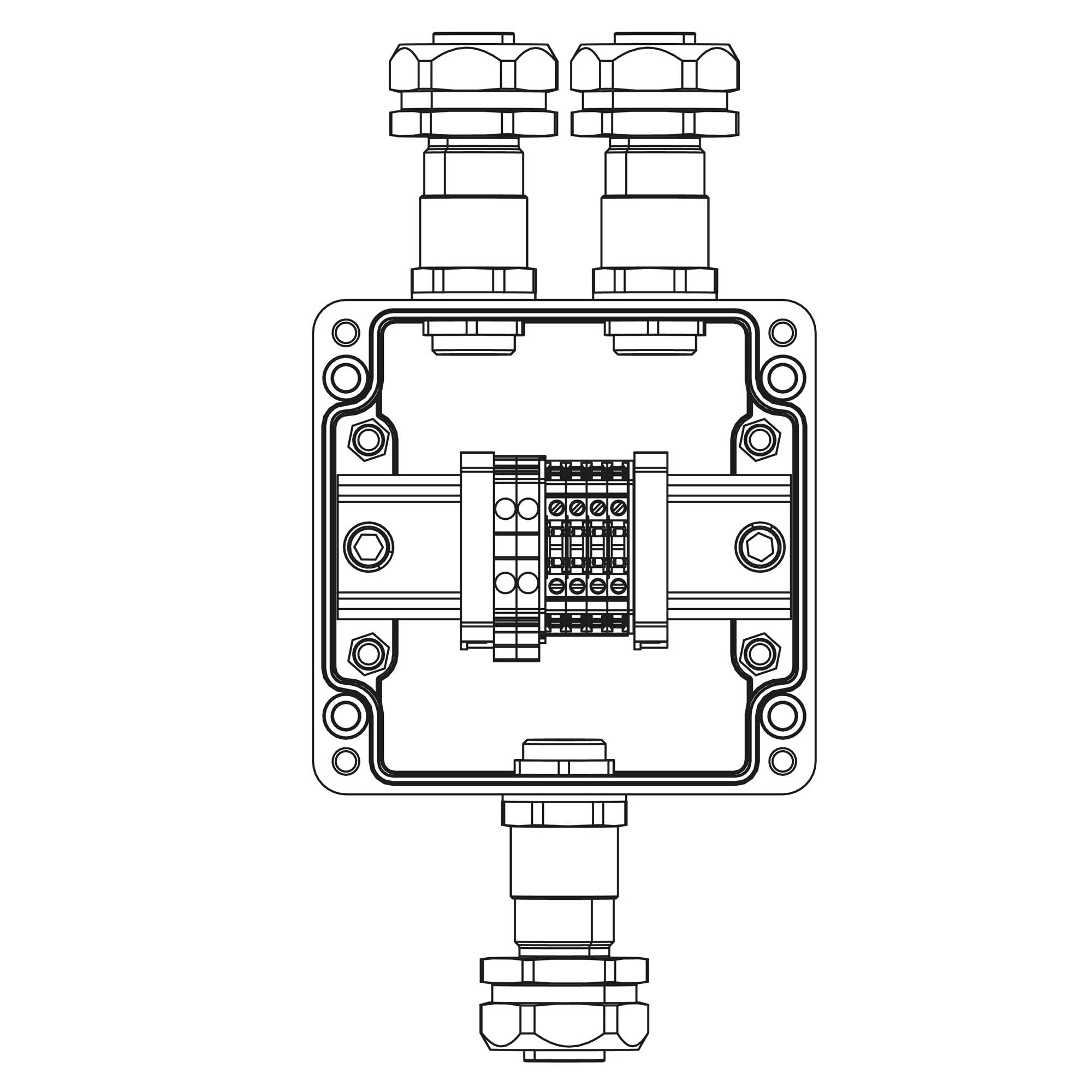 Взрывозащищенная клеммная коробка из полиэстера TBE - P - 03 - (2xCBC.2 - 2xCBC.2(i) - 2xTEO.2) - 2xKAEPM2MHK - 20(A) - 1xKAEPM2MHK - 20(C)1Ex e IIC Т5 Gb / Ex tb IIIC T95°C Db IP66 Un=500 В, In=23 А Взрывозащищенная клеммная коробка GRP 120x120x90мм 1Ex e IIC Т5 Gb / Ex tb IIIC T95°C Db IP66 Температурный режим Т5 40°C Количество клемм: CBC.2 2 шт. Ток А CBC.2(i) 2 шт. Ток А TEO.2 2 шт. Ток А Вводы Сторона А: Универсальный кабельный ввод серии КАЕРМ для бронированного и небронированного кабеля М20х1,5 d:5,8 - 12мм. Dn:20. Никелированная латунь IP66/IP68 2 шт. Сторона C: Универсальный кабельный ввод серии КАЕРМ для бронированного и небронированного кабеля М20х1,5 d:5,8 - 12мм. Dn:20. Никелированная латунь IP66/IP68 1 шт.