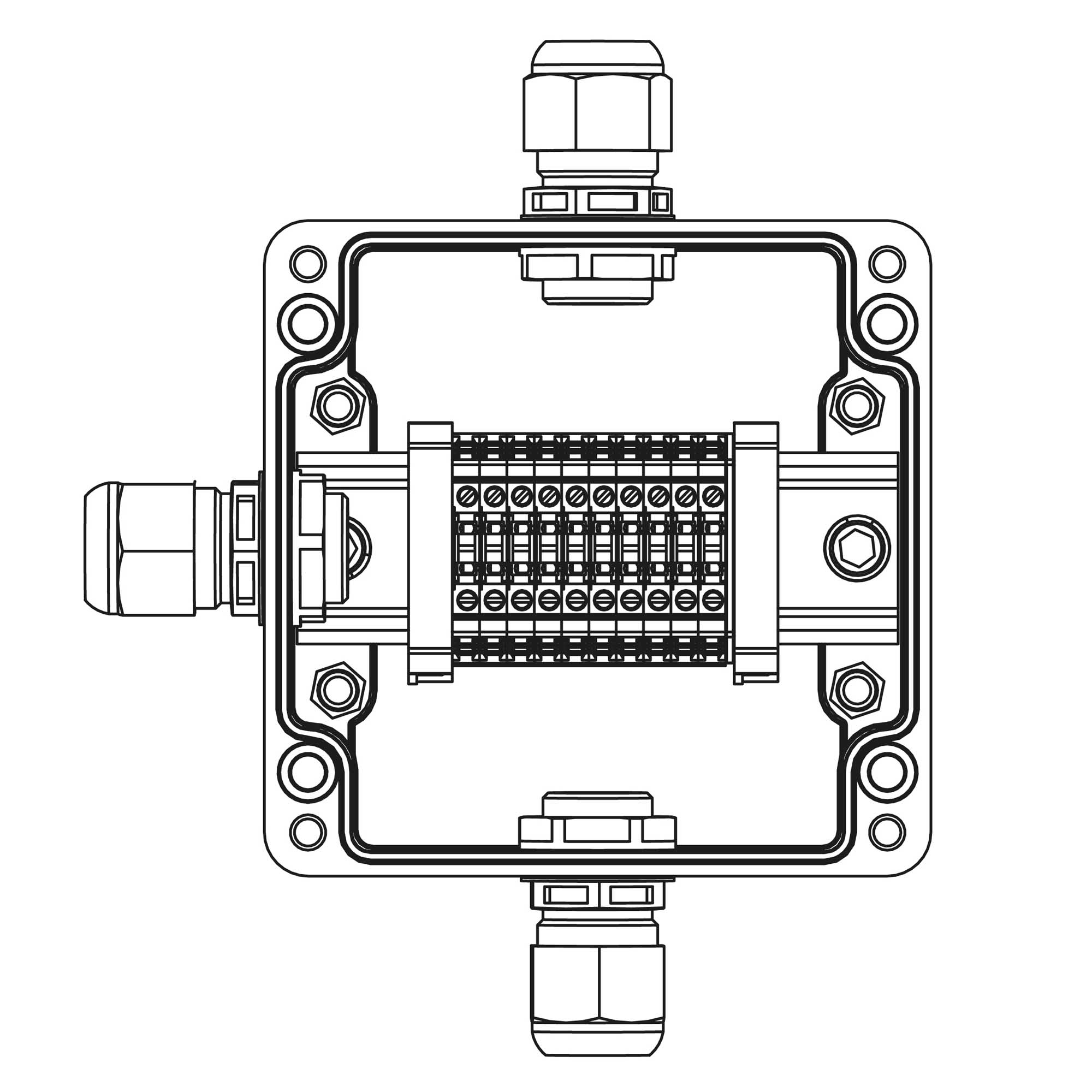 1231.031.22.121W | Взрывозащищенная клеммная коробка из полиэстера TBE-P-03-(10xCBC.2)-1xPABMP(A)-1xPABMP(C)-1xPABMP(D)1Ex e IIC Т5 Gb / Ex tb IIIC T95°C Db IP66