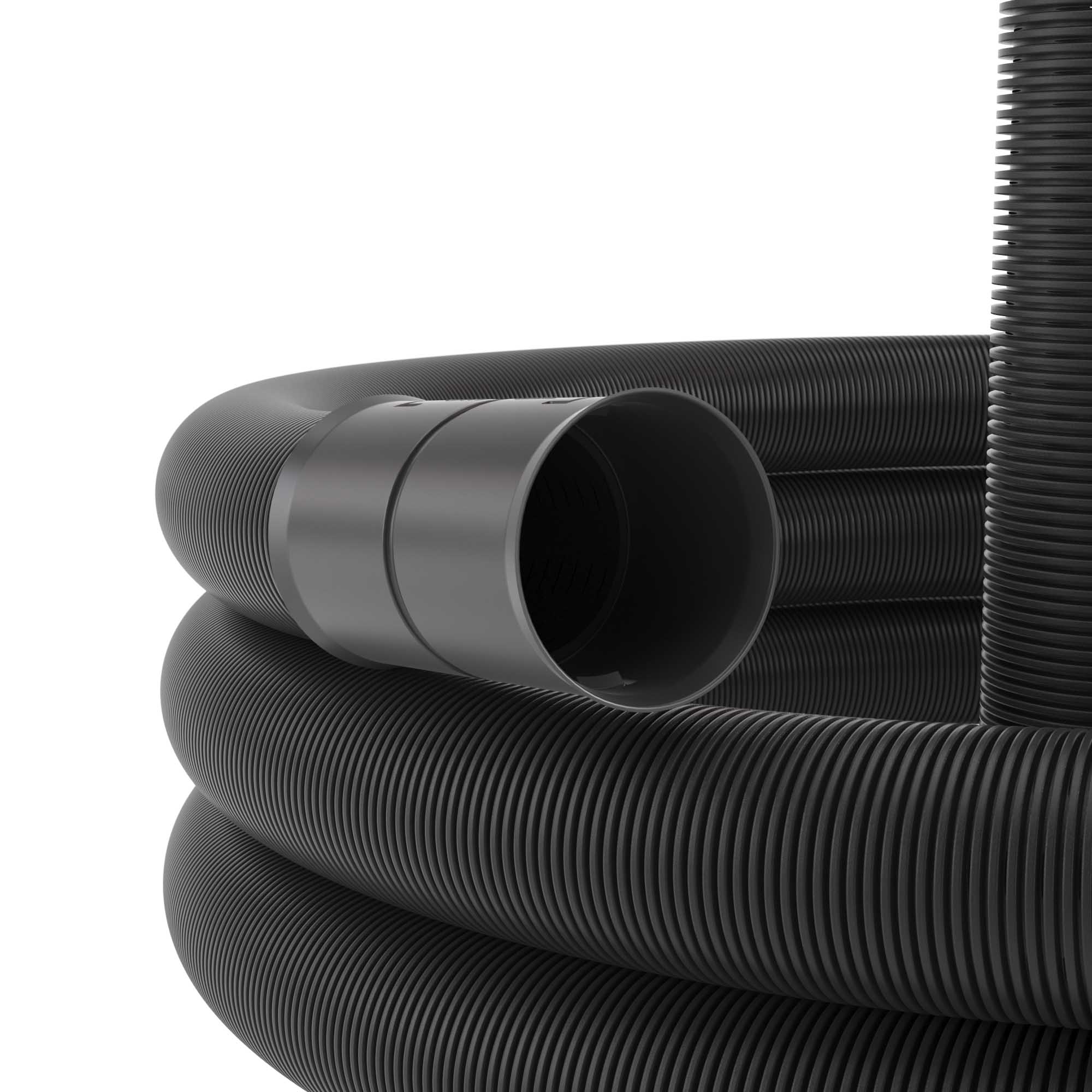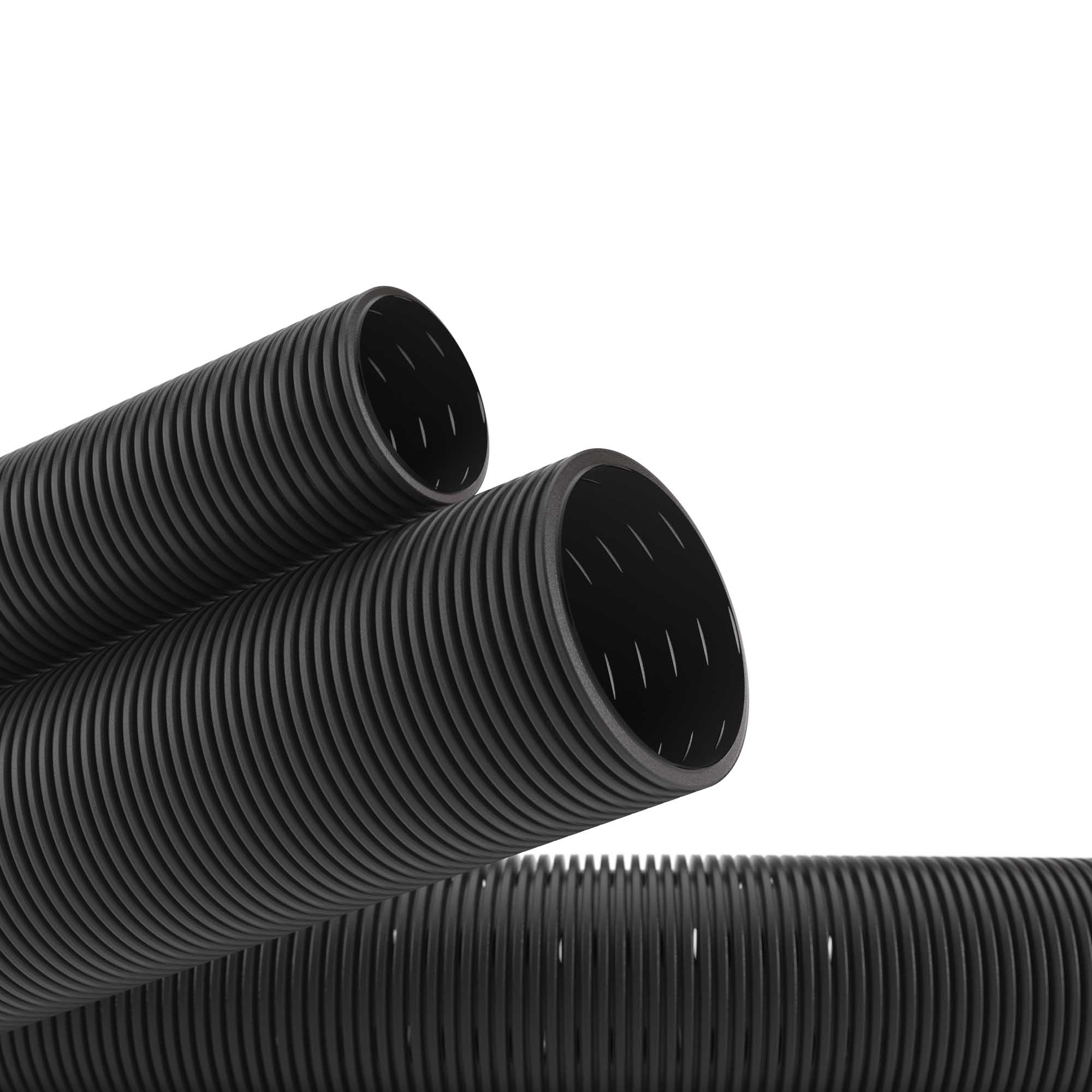 140911A | Двустенная труба ПНД гибкая дренажная д.110мм, SN6, перфорация 360 град., в бухте 50м, цвет черный