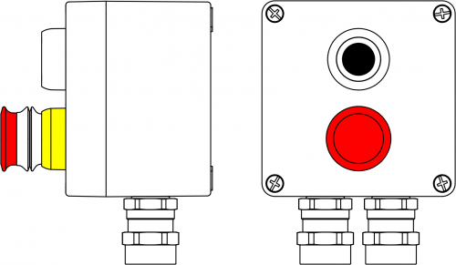 2201.121.19.03J | Пост управления Ex из алюминия: 1Ex d e IIC T6 Gb X / Ex tb IIIB T80°C Db X / IP66: Аварийная кнопка красная, 1NC/1NO -1 шт: Кнопкачерная, 1NC/1NO -1 шт.: C: ввод D5,5-13мм под бронированный кабель Ni-2 шт.