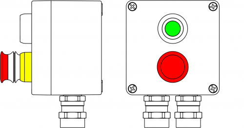 2201.121.19.03L | Пост управления Ex из алюминия: 1Ex d e IIC T6 Gb X / Ex tb IIIB T80°C Db X / IP66: Аварийная кнопка красная, 1NC/1NO -1 шт.:Кнопка Зеленая, 1NC/1NO -1 шт.: С: ввод D5,5-13мм под бронированный кабель Ni -2 шт.