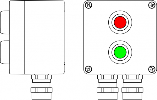 2201.121.19.03N | Пост управления Ex из алюминия: 1Ex d e IIC T6 Gb X / Ex tb IIIB T80°C Db X / IP66: Кнопка Зеленая, 1NC/1NO -1 шт: Кнопкакрасная,1NC/1NO - 1 шт.: С: ввод D5,5-13мм под бронированный кабель Ni -2 шт.
