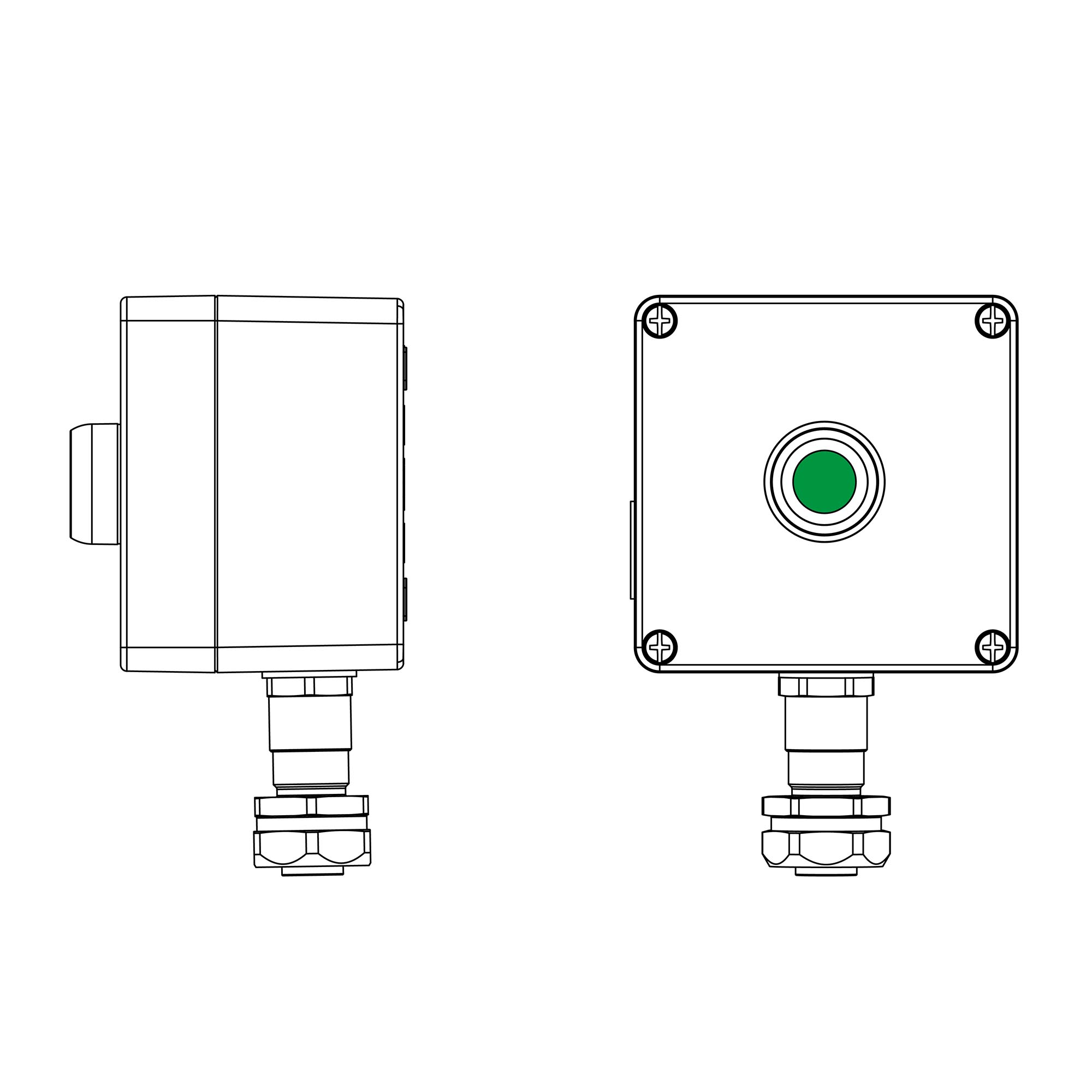 Взрывозащищенный пост управления из алюминия CPE - A - 12 - (1xP1G(11)) - 1xKAEPM2MHK - 20(C)1Ex d e IIC Т5 Gb / Ex tb IIIC T95°C Db IP66 Un=380 В, In=16 А Взрывозащищенный пост управления из алюминия 120x120x90мм 1Ex d e IIC Т5 Gb / Ex tb IIIC T95°C Db IP66 Температурный режим Т5 40°C Количество элементов управления: Контактный блок 1NC/1NO + Кнопка P1 Зеленая 1 шт. Количество клемм: Вводы Сторона C: Взрывозащищенный кабельный ввод серии КАЕРМ для бронированного инебронированного кабеля в металлорукаве COSMEC Dn:20 М20х1,5 d:5,8 - 12мм.Никелированнаялатунь IP66/IP68 1 шт.