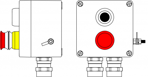 2231.031.19.04Y | Пост управления Ex из GRP: 1Ex d e IIC T6 Gb X / Ex tb IIIB T80°C Db X / IP66: Аварийная кнопка красная, 1NC/1NO -1 шт.: Кнопкачерная, 1NC/1NO - 1 шт.: C: ввод D5,5-13мм под бронированный кабельNi -2 шт.