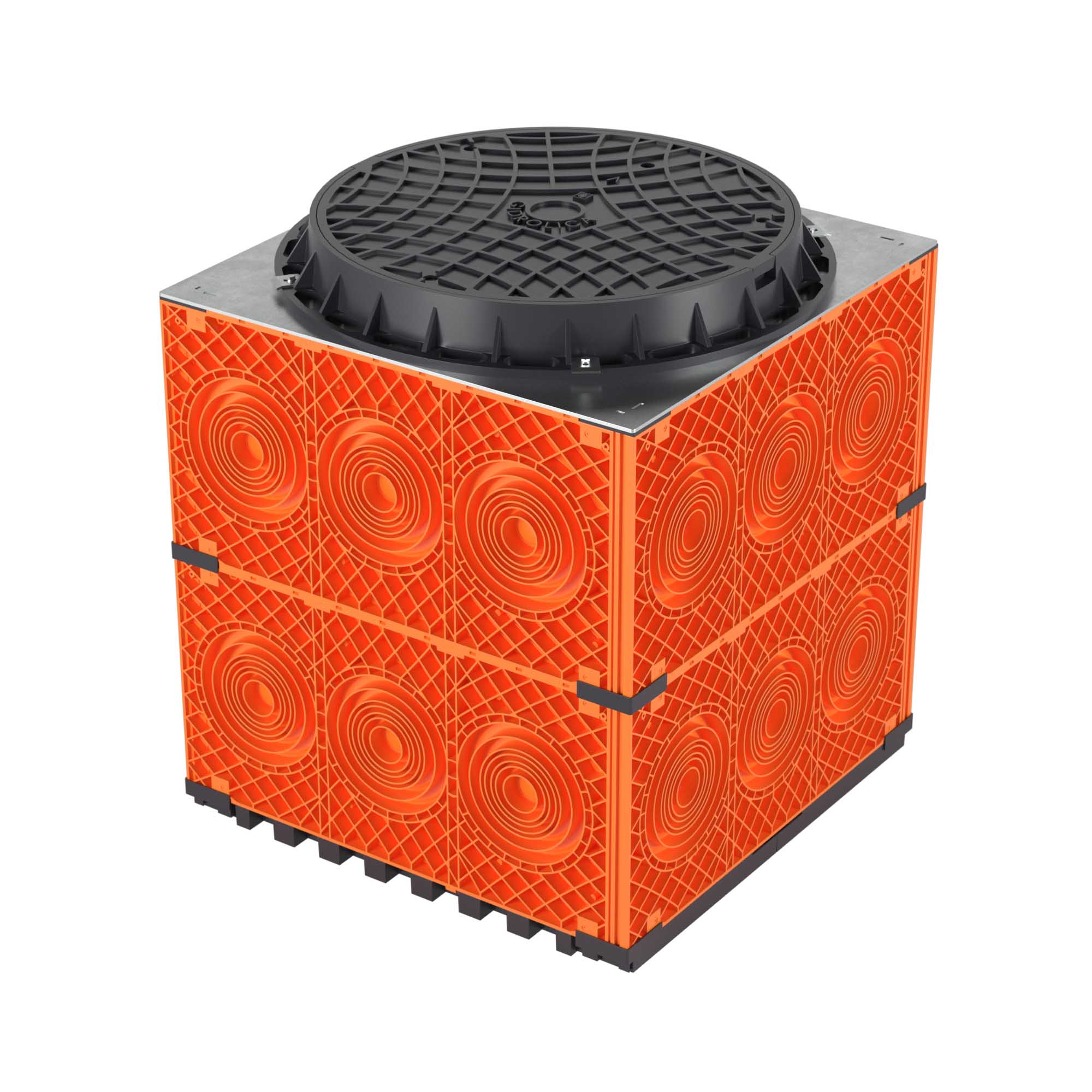 Модульный кабельный колодец применяется для строительства кабельной канализации, реконструкции кабельных сетей в ограниченных пространствах, с применением двустенных гофрированных труб. Колодец представляет собой сборную конструкцию, состоящую из разборного дна, собранных из отдельных модулей стенок, горячеоцинкованной металлической рамы и пластикового люка, усиленного профилем. Габариты: 750х750х750 Монтаж труб: предусмотрено 24 выбивных отверстия с фиксацией, для ввода двустенных гофрированных труб диаметром 50, 75, 90, 110, 125, 160 и 200 мм Нагрузка на крышку колодца – А15 по ГОСТ 3634 - 99 (EN124) Цвет: оранжевый (боковые модули); черный (крышка, фиксаторы, дно) Дно: перфорированное Категория горения –ПВ0