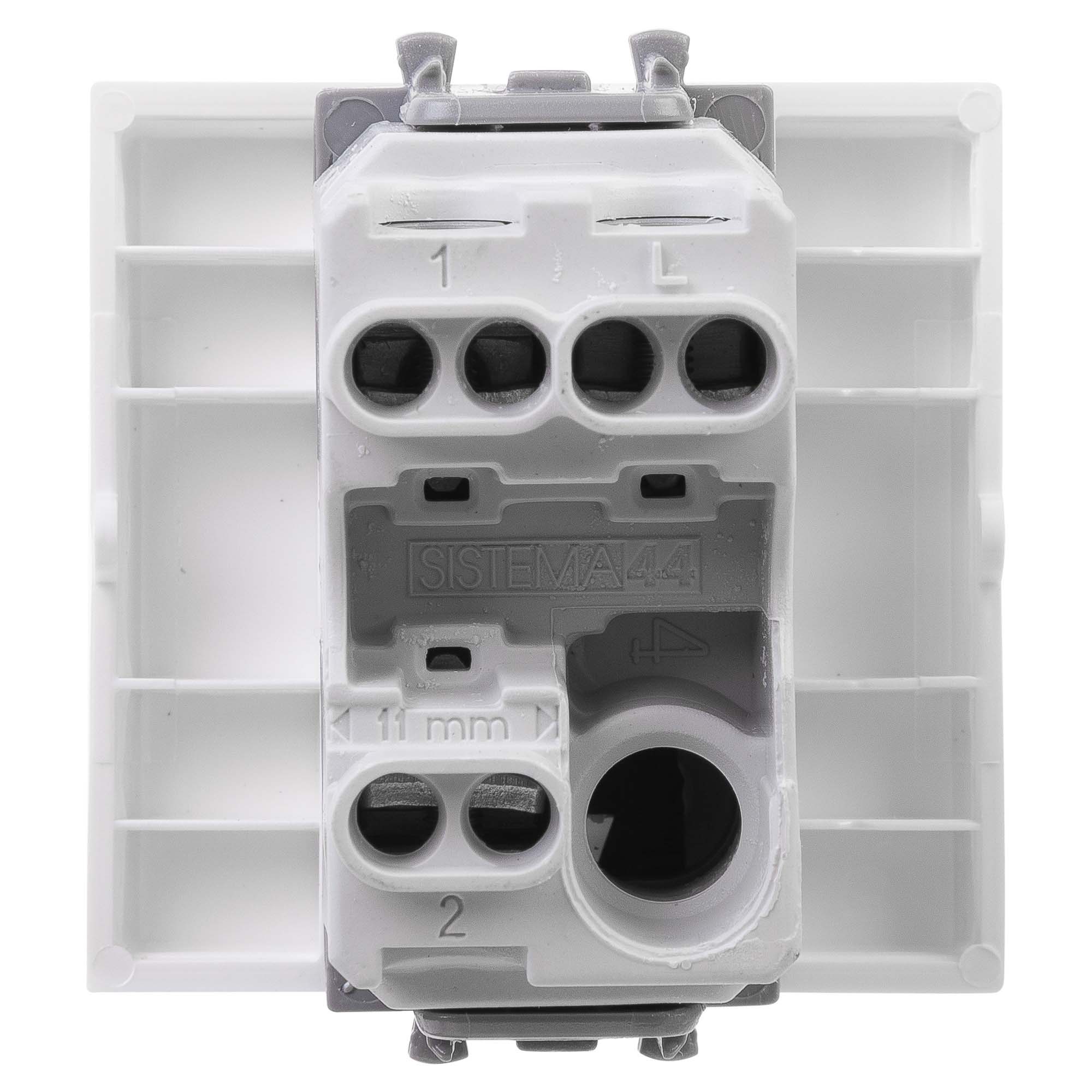 Переключатель модульный серии "Avanti". Предназначен для монтажа в системы "In-liner Front" и "In-liner Aero" при помощи рамок-суппортов и каркасов "Avanti" (код 4400912 и т.д.); используется для включения/выключения освещения из двух мест. Диаметр отверстий для ввода кабелей – 3 мм (по 2 отверстия на одну клемму); винтовые зажимы; шаблон для зачистки кабеля – 11 мм; номинальное напряжение – 230 В. Фиксация в подрозеточные коробки при помощи каркаса с лапками (код 4400802) и саморезов. 2 модуля. Цвет: "Белое облако".