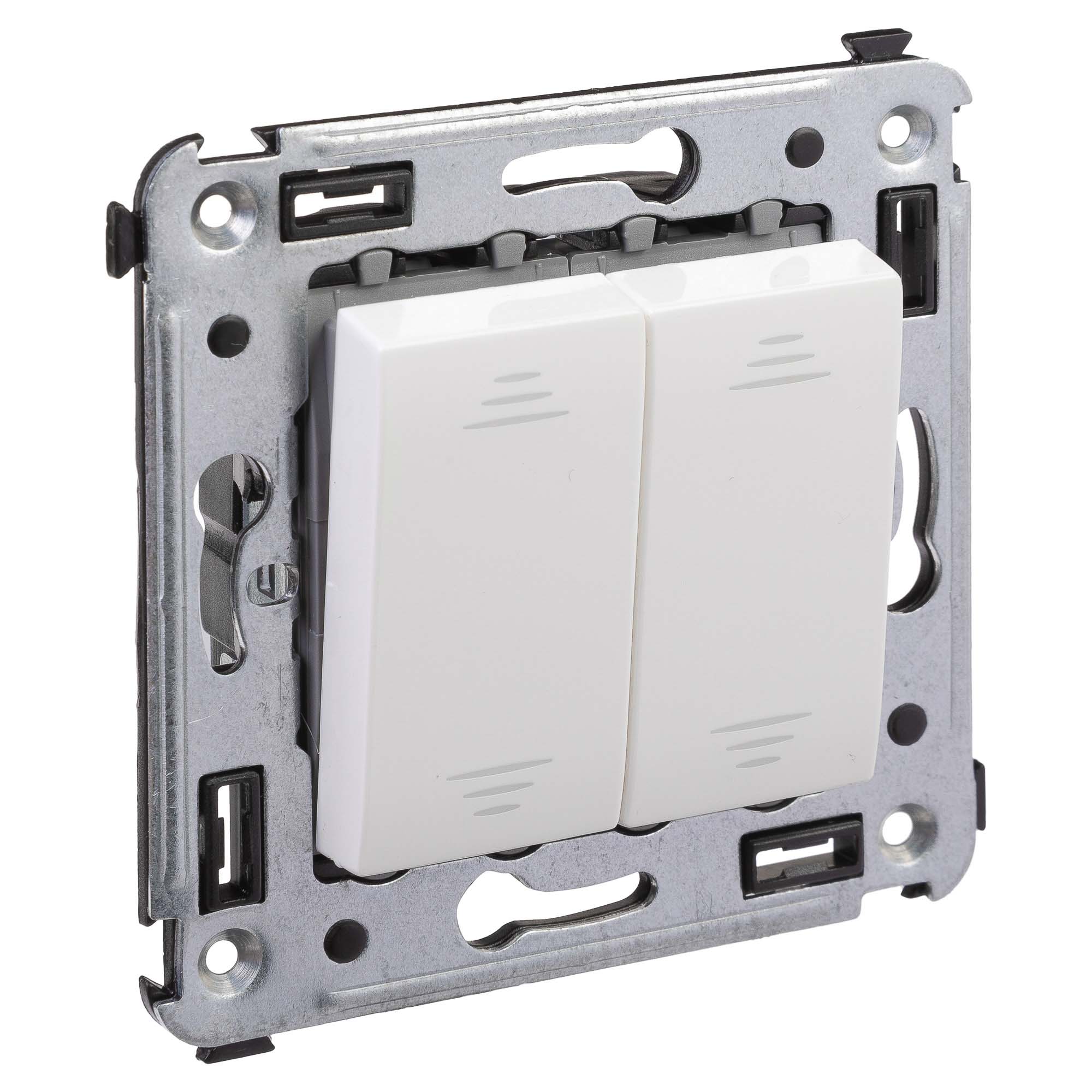 Задача двухклавишного переключателя – управление двумя контурами освещения из двух точек. Он позволяет включить/выключить освещение двумя светильниками из удобной точки – например, в спальне переключатель может размещаться возле кровати. Переключатель предназначен для скрытого монтажа в стену. Номинальное напряжение – 230 В, номинальный ток – 16 А. Материал: металл, термопласт. Цветовое решение пластиковых элементов – "Белое облако". Это классический оттенок, одинаково хорошо сочетающийся с любой цветовой гаммой. Для декоративного оформления применяются рамки серии "Avanti" – как близких оттенков, так и контрастных.