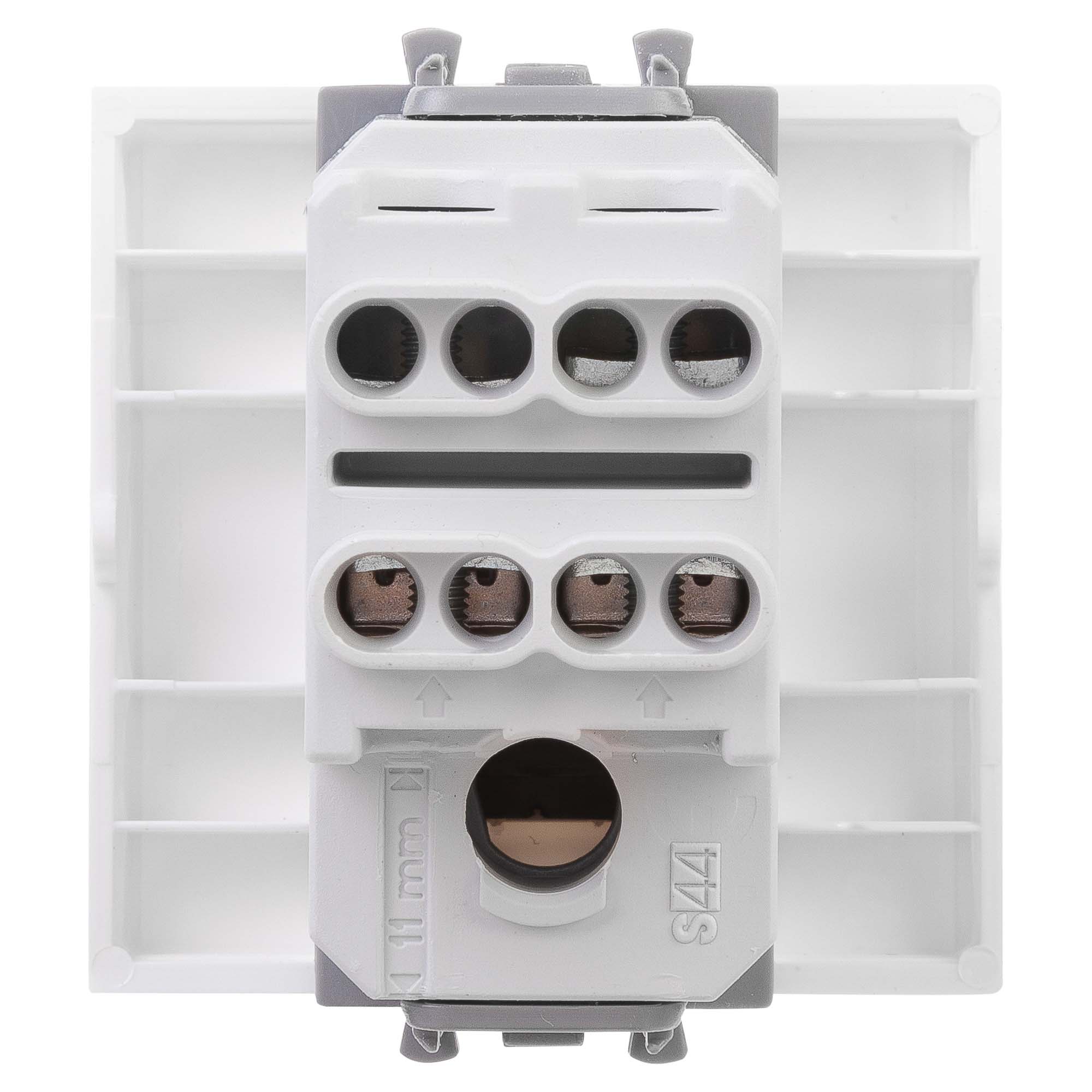 Инвертор одноклавишный модульный. Назначение: для монтажа в системы "In-liner Front" и "In-liner Aero" при помощи рамок-суппортов и каркасов "Avanti" (код 4400912 и т.д.). Используется для включения/выключения освещения с трех и более точек. Характеристики: диаметр отверстий для ввода кабелей – 3 мм (по 2 отверстия на одну клемму); винтовые зажимы; шаблон для зачистки кабеля – 11 мм; номинальный ток – 16 A; номинальное напряжение – 230 В; фиксация в подрозеточные коробки при помощи каркаса с лапками (код 4400802) и саморезов. Количество модулей: 2. Цвет: "Белое облако".