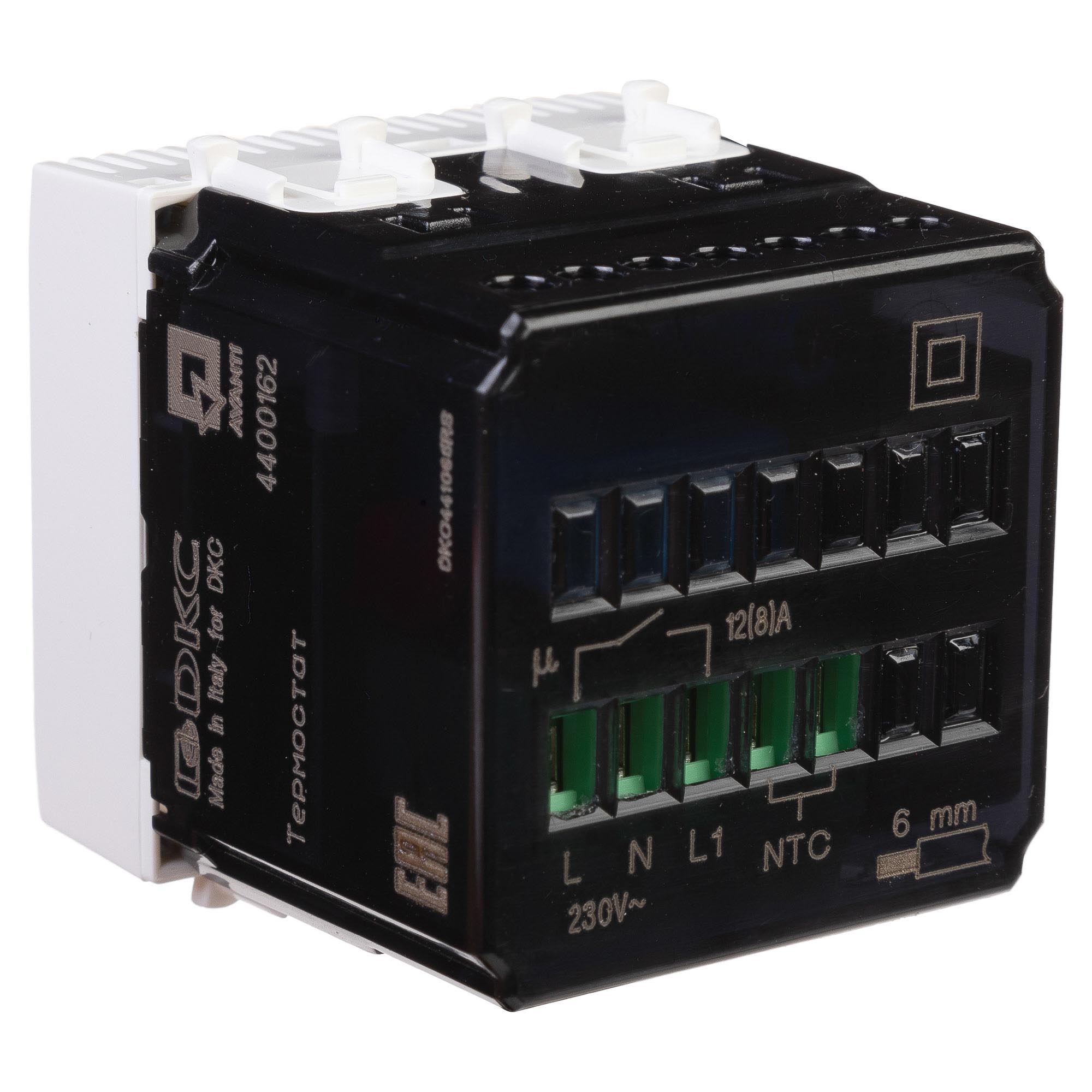 Термостат – устройство, предназначенное для регулировки температуры. Компания ДКС предлагает вашему вниманию термостат для теплых полов, применение которого позволяет устанавливать комфортную температуру пола. Двухмодульный термостат монтируется в настенный кабель канал. Номинальное напряжение – 230 В, номинальный ток – 5 А.