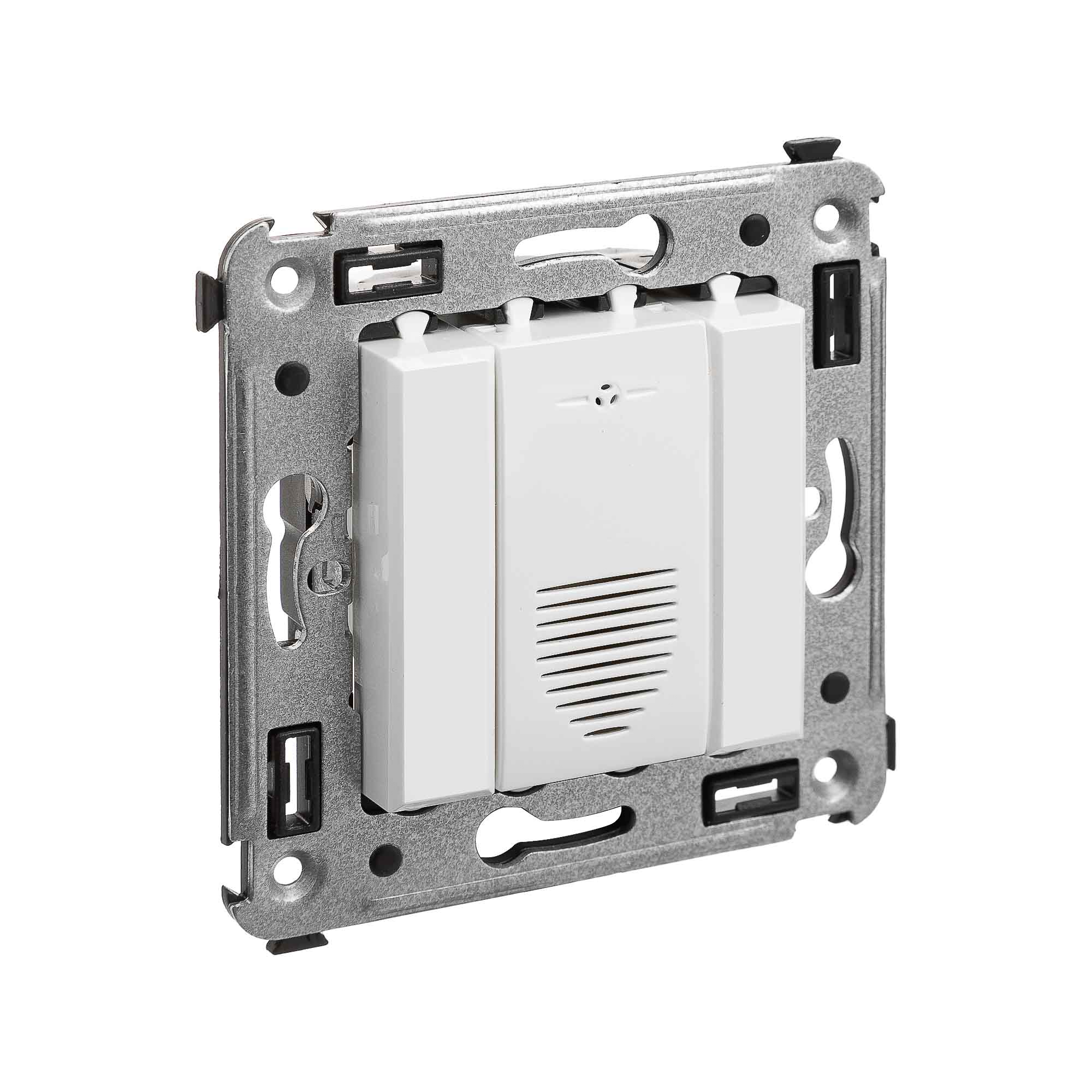Звонок. Назначение: для монтажа в подрозеточные коробки глубиной не менее 45 мм (код 59301). Предназначен для звуковой индикации. Характеристики: винтовые зажимы;. номинальное напряжение – 230 В; фиксация в подрозеточные коробки глубиной не менее 45 мм при помощи каркаса с лапками. (код 4400802) и саморезов. Цвет: "Белое облако".