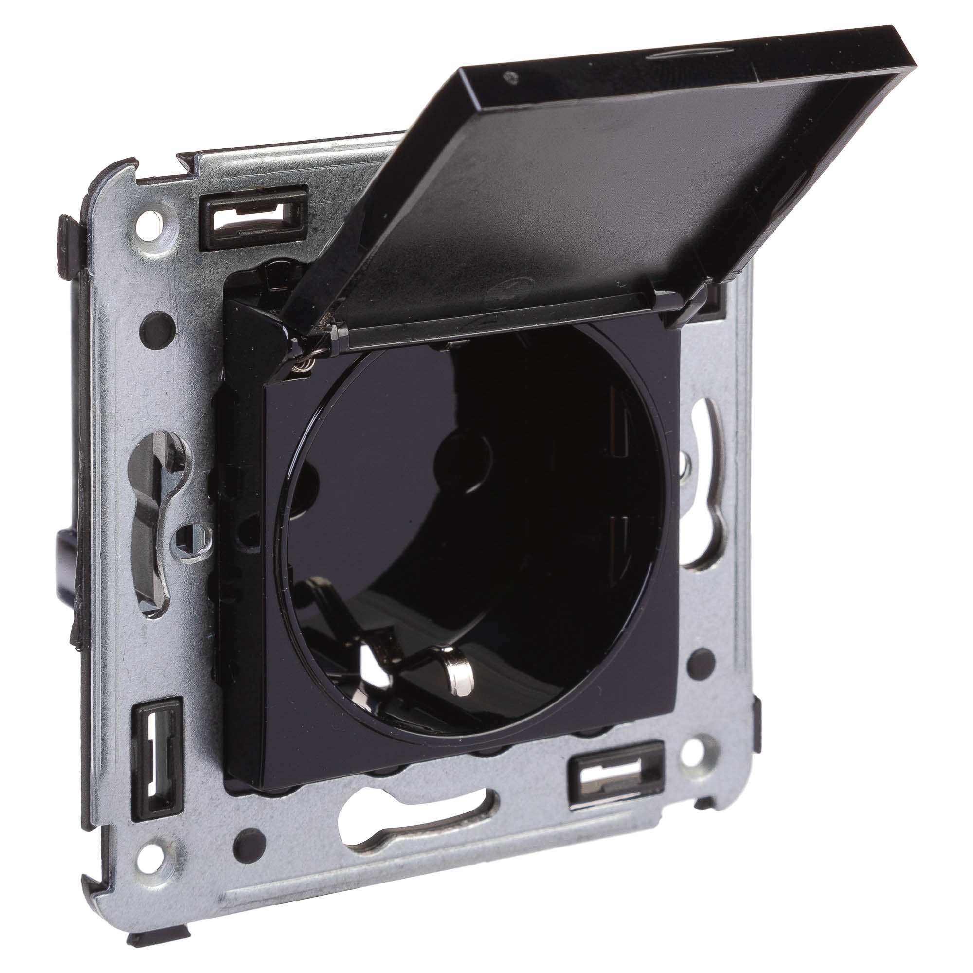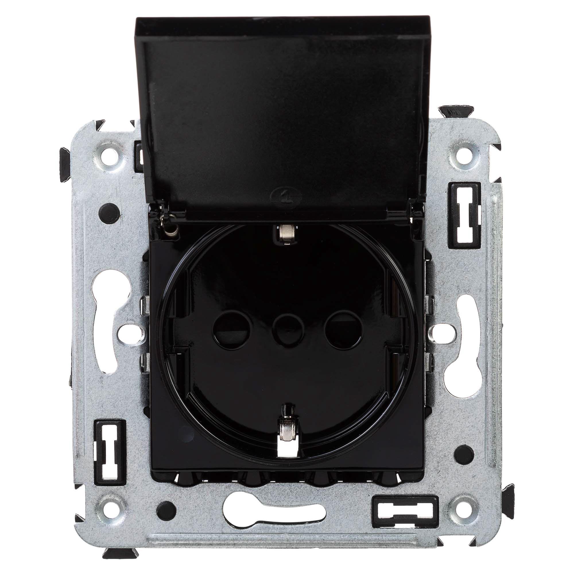 4402013 | Розетка с крышкой в стену, 2P+E, с з/ш, "Avanti", "Черный квадрат"