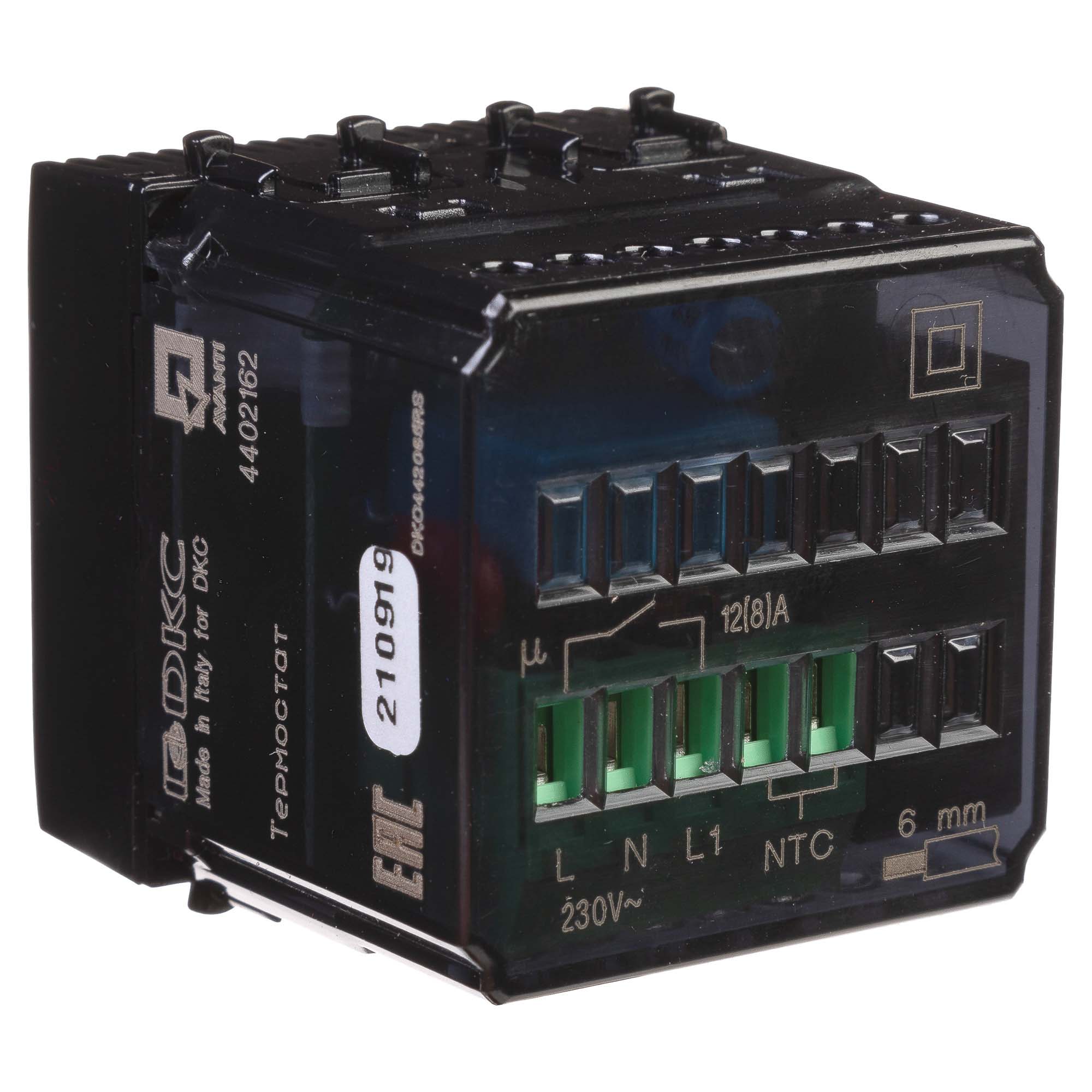 Термостат – устройство, предназначенное для регулировки температуры. Компания ДКС предлагает вашему вниманию термостат для теплых полов, применение которого позволяет устанавливать комфортную температуру пола. Двухмодульный термостат монтируется в настенный кабель канал. Номинальное напряжение – 230 В, номинальный ток – 5 А.
