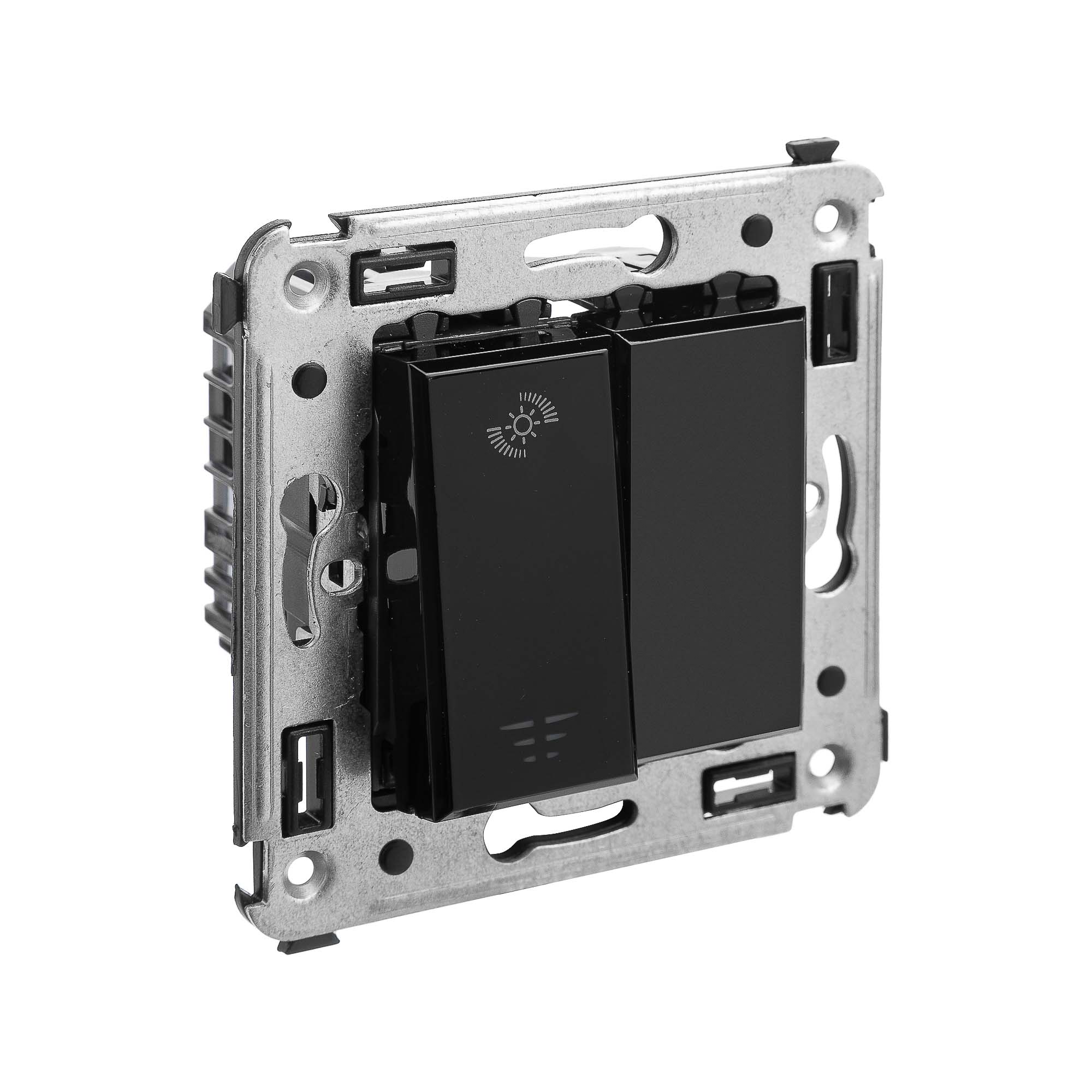 Диммеры предназначены для управления контуром освещения и регулировки интенсивности освещения помещения. Кнопочный диммер внешне схож с обычным выключателем, но с его помощью можно не только включать/выключать свет, но и менять яркость освещения. Диммер от ДКС применяется для скрытой установки в стену. Цвет пластиковых частей устройства - "Черный квадрат", глубокий загадочный оттенок, оттеняющий другие цвета и создающий в интерьере интригующие акценты.