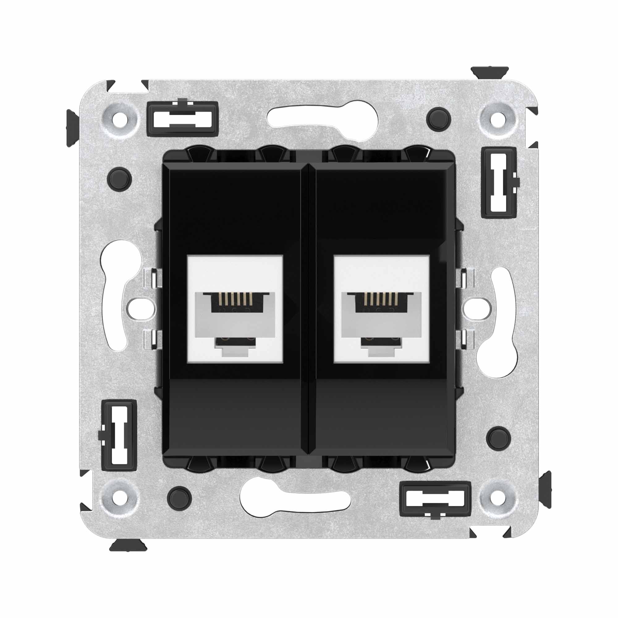Телефонная розетка RJ - 12 двойная без шторки используется для коммутации линий телефонной связи в патч - панелях или для связи телефонных аппаратов с розеткой. Предназначена для скрытого монтажа в стену, поставляется в комплекте с суппортом. Материал – металл, термопласт. Пластиковые детали электроустановочного изделия имеют цвет "Черный квадрат".