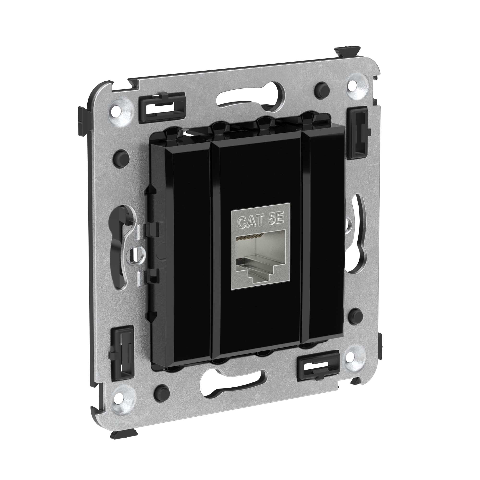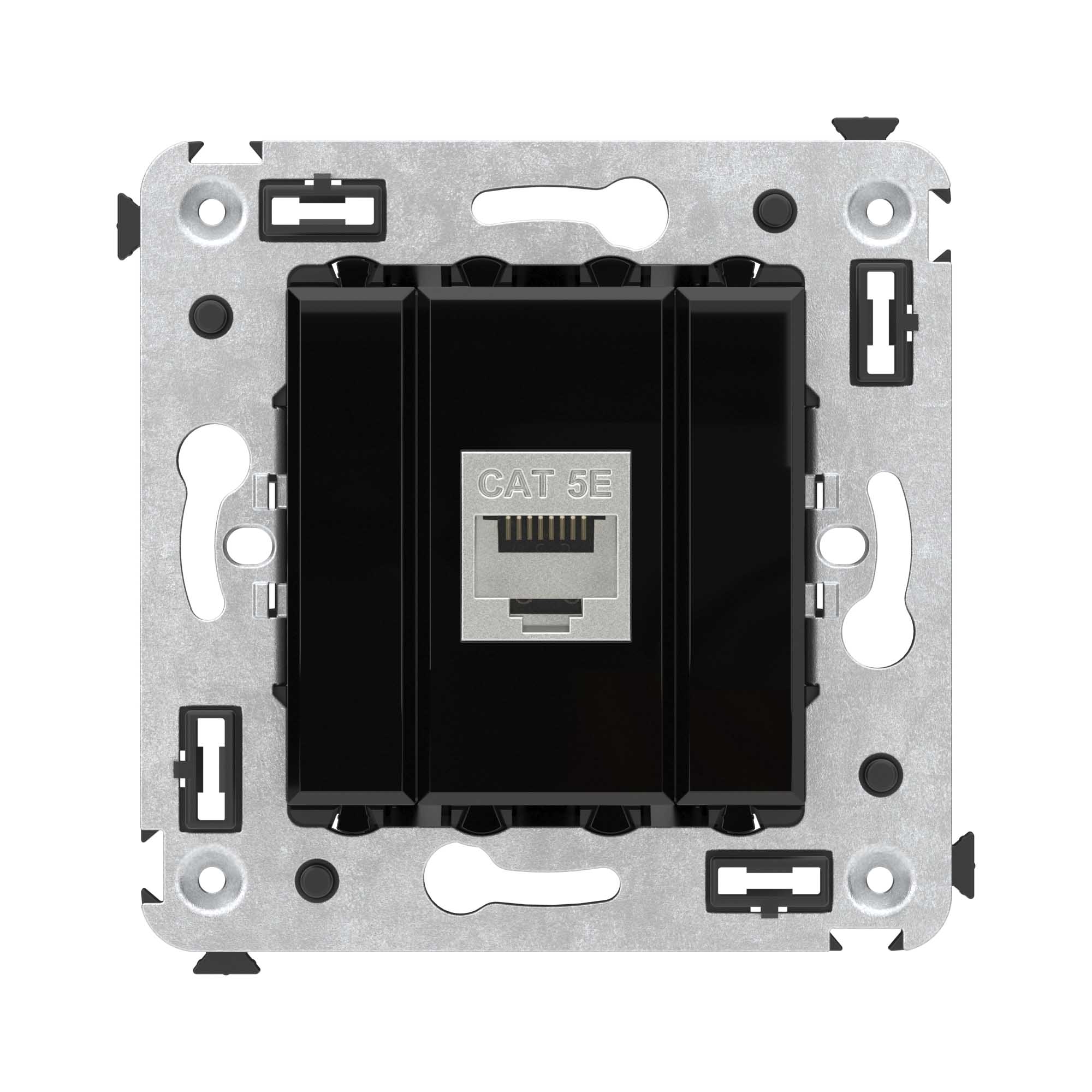Компьютерная розетка одинарная экранированная без шторки используется для подключения компьютерной техники и соединения с патч - панелью. Компьютерная розетка предназначена для скрытого монтажа в стену, поставляется в комплекте с суппортом. Розетка RJ - 45 категории 5e – это наиболее популярная на сегодняшний день модель. Она позволяет организовать сеть с частотой 125 МГц и скоростью до 1000 Мбит/с. Материал – металл, термопласт. Пластиковые детали устройства имеют оттенок "Черный квадрат".