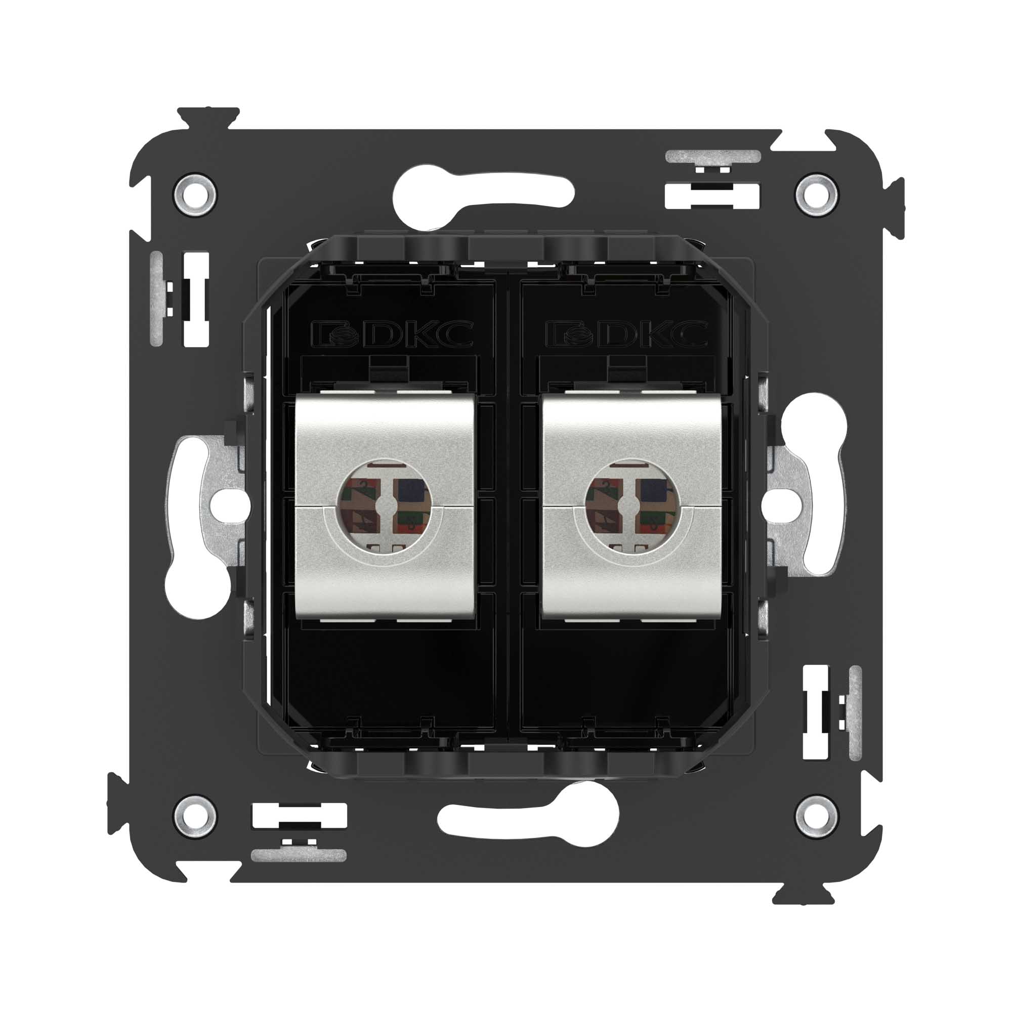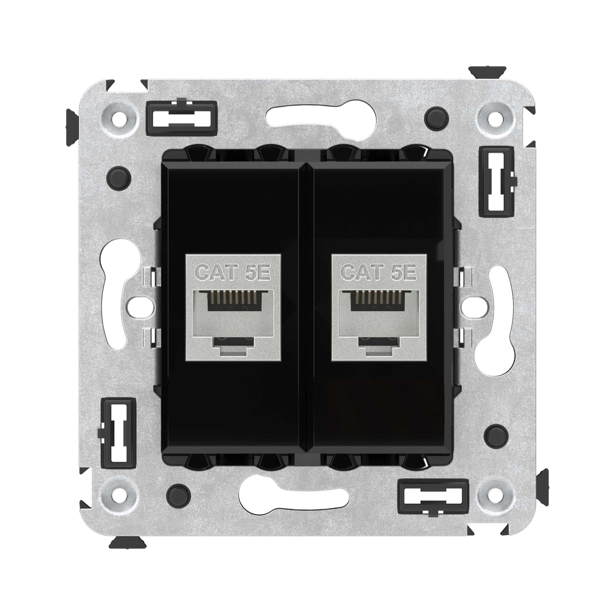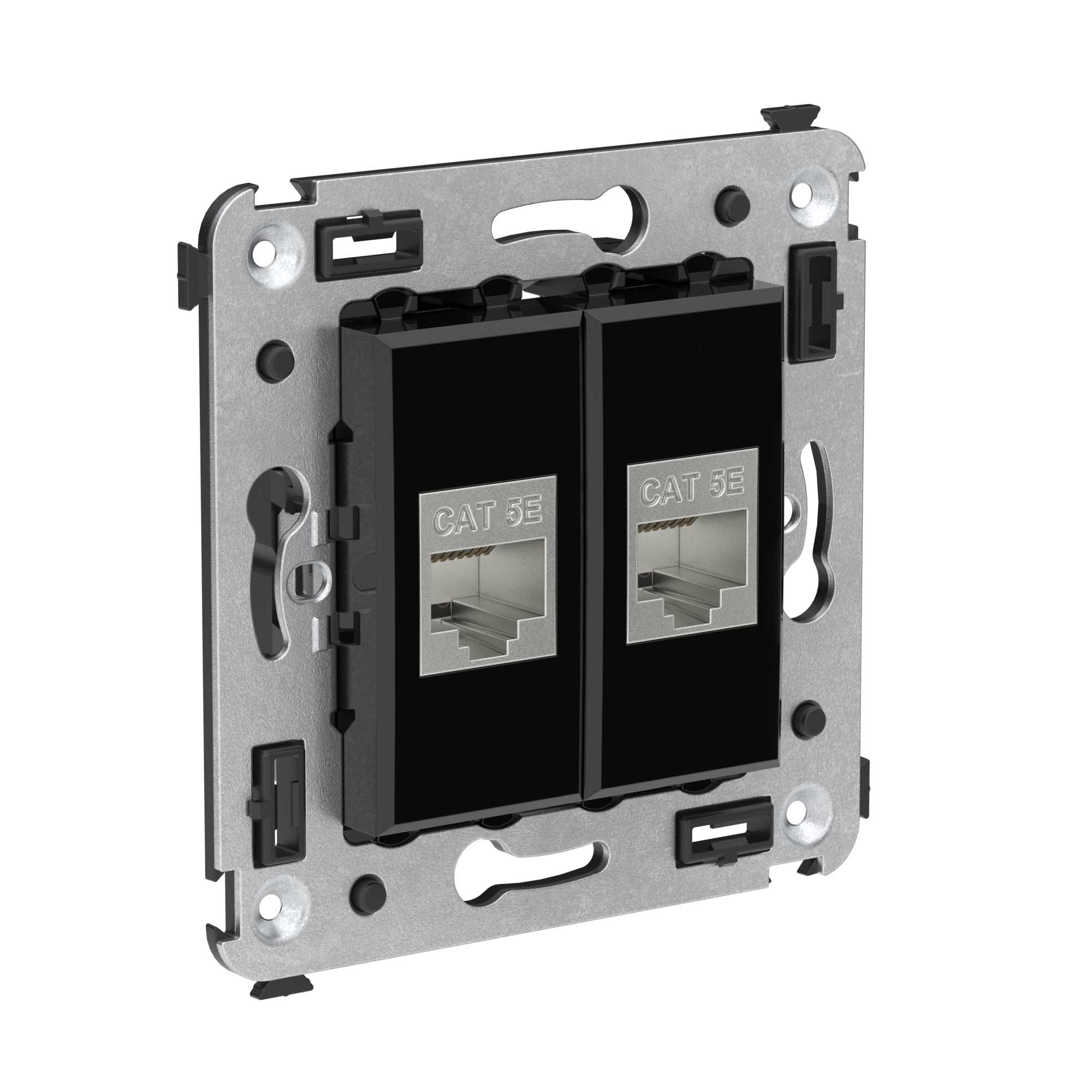 Компьютерная розетка двойная экранированная без шторки используется для подключения компьютерной техники и соединения с патч - панелью. Компьютерная розетка предназначена для скрытого монтажа в стену, поставляется в комплекте с суппортом. Розетка RJ - 45 категории 5e – это наиболее популярная на сегодняшний день модель. Она позволяет организовать сеть с частотой 125 МГц и скоростью до 1000 Мбит/с. Материал – металл, термопласт. Пластиковые детали устройства имеют оттенок "Черный квадрат".