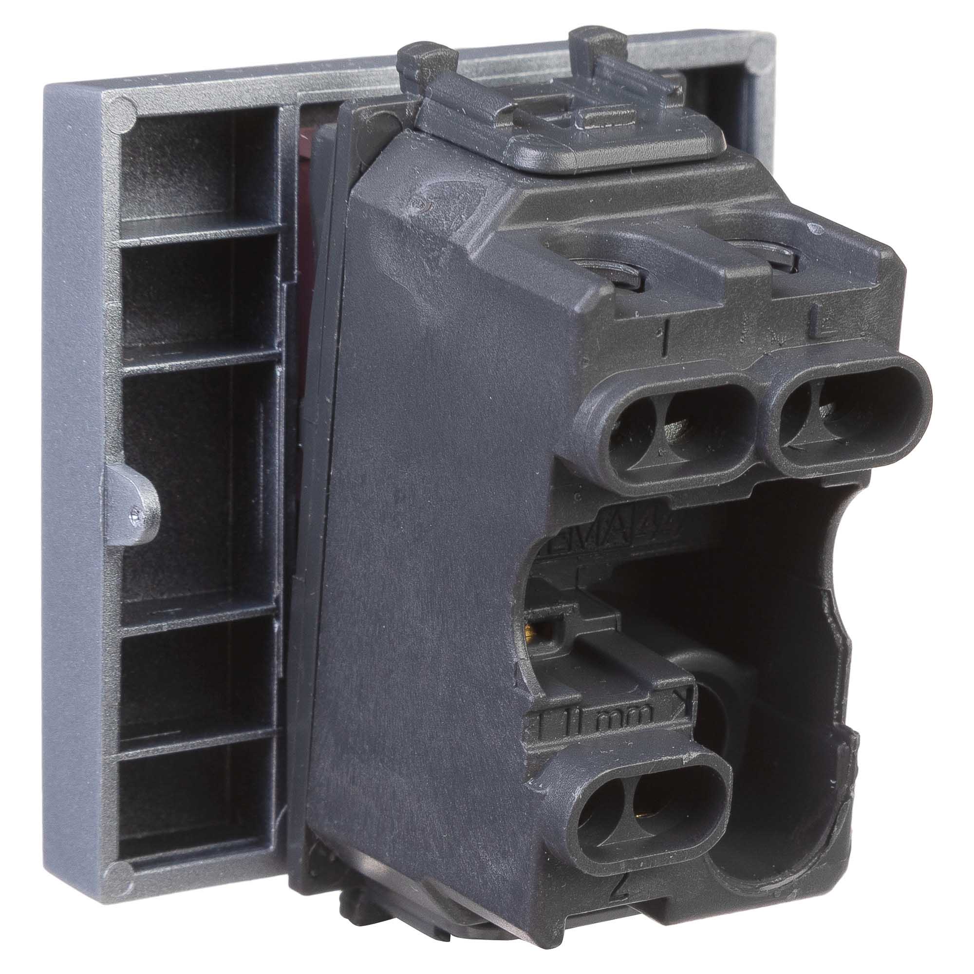 Переключатель модульный серии "Avanti". Предназначен для монтажа в системы "In-liner Front" и "In-liner Aero" при помощи рамок-суппортов и каркасов "Avanti" (код 4400912 и т.д.); используется для включения/выключения освещения из двух мест. Диаметр отверстий для ввода кабелей – 3 мм (по 2 отверстия на одну клемму); винтовые зажимы; шаблон для зачистки кабеля – 11 мм; номинальное напряжение – 230 В. Фиксация в подрозеточные коробки при помощи каркаса с лапками (код 4400802) и саморезов. 2 модуля. Цвет: "Закаленная сталь".