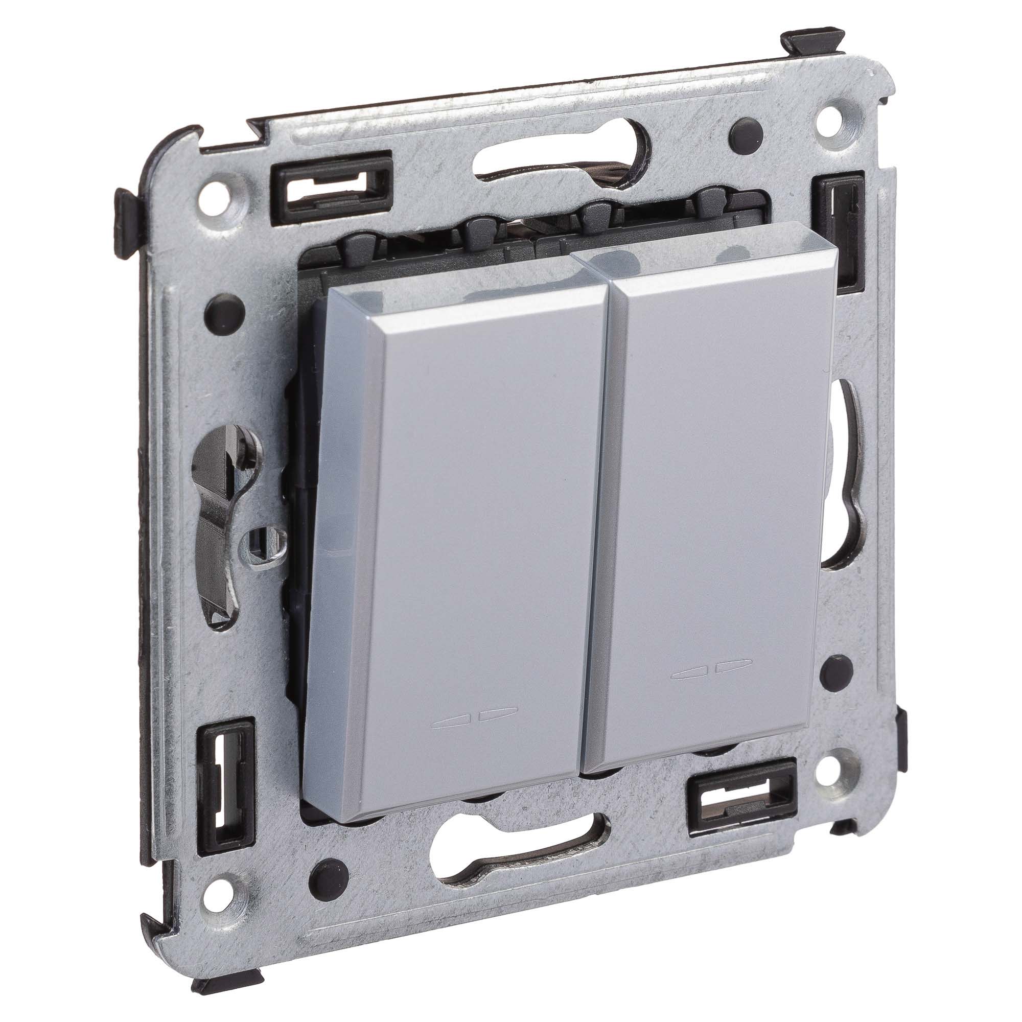 Переключатель двухклавишный устанавливается в тех случаях, когда есть необходимость в управлении двумя контурами освещения из двух точек. Выключатели из серии ЭУИ "Avanti" предназначены для скрытого размещения в стене. Номинальное напряжение выключателя – 230 В, номинальный ток – 16 А.