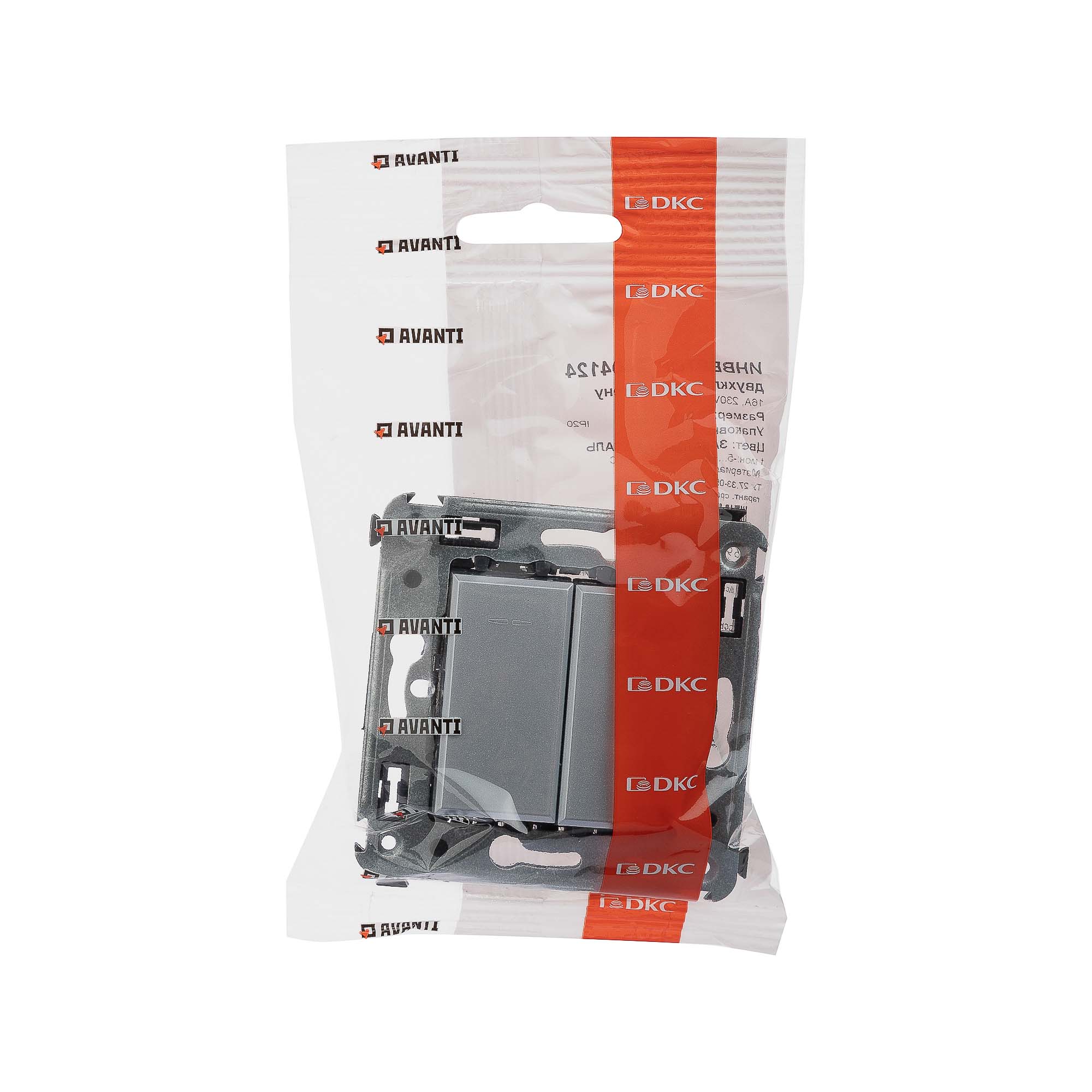 4404124 | Инвертор двухклавишный в стену, Avanti, Закаленная сталь