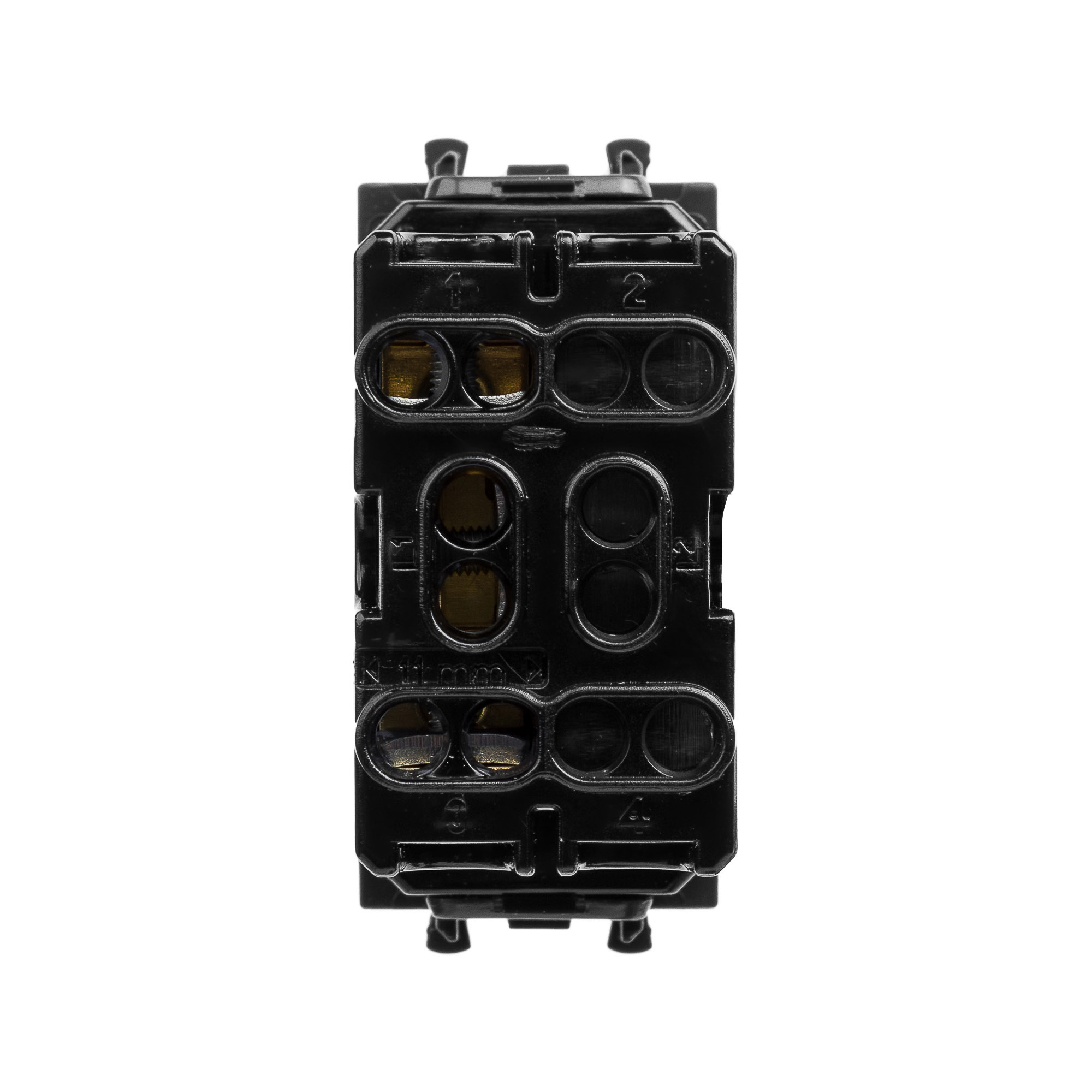 Механизм управления рольставней модульный. Назначение: для монтажа в системы "In-liner Front" и "In-liner Aero" при помощи рамок-суппортов и каркасов "Avanti" (код 4400912 и т.д.); управление приводом рольставней. Характеристики: номинальное напряжение – 230 В; управление рольставнями и шторами; диаметр отверстий для ввода кабелей – 3 мм; винтовые зажимы; шаблон для зачистки кабеля – 11 мм; фиксация в подрозеточные коробки глубиной не менее 45 мм при помощи каркаса с лапками (код 4400802) и саморезов. Кол-во модулей: 1. Цвет: "Закаленная сталь"