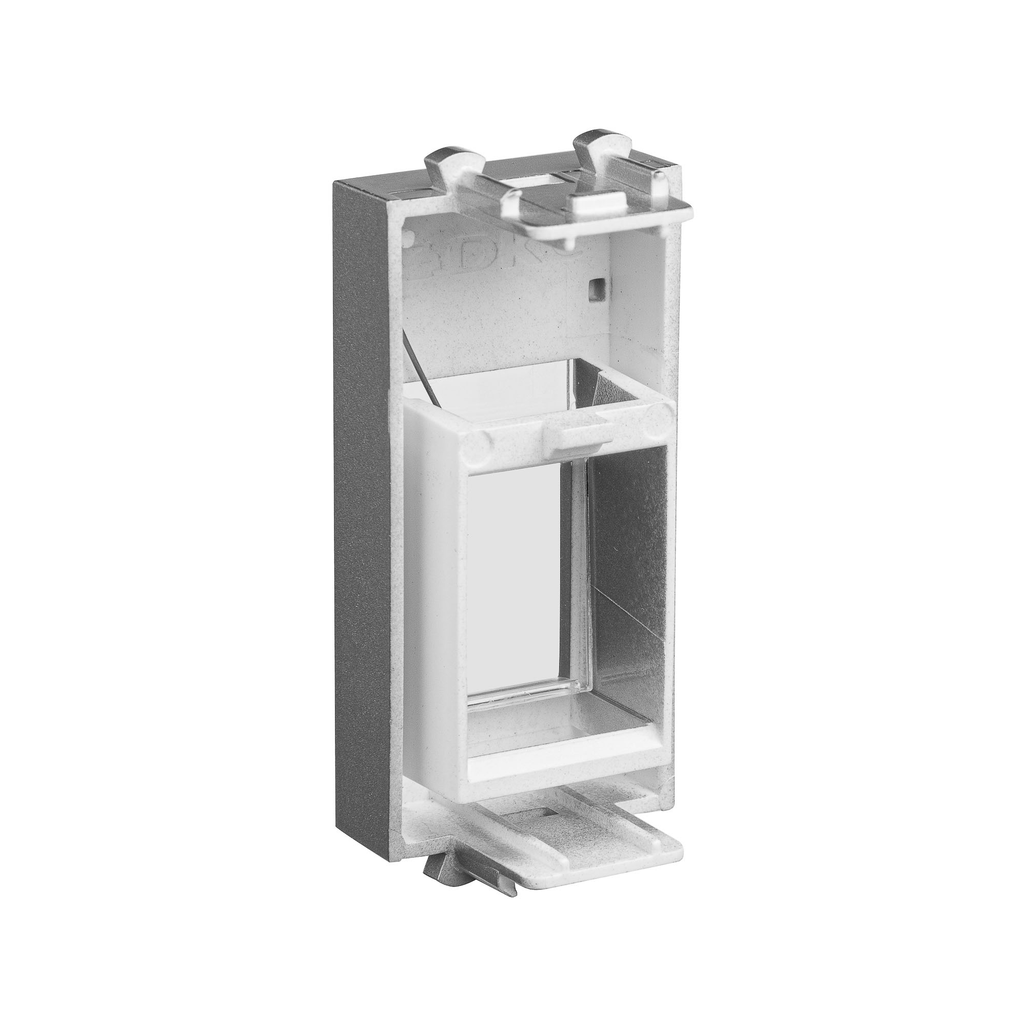 Адаптер со шторкой для Keystone. Предназначен для монтажа в системы "In-liner Front" и "In-liner Aero" при помощи рамок-суппортов и каркасов "Avanti" (код 4400912 и т.д.). Используется для монтажа интернет-розеток типа Keystone. Механизмы с возвратной защитной шторкой. Фиксация в подрозеточные коробки глубиной не менее 45 мм при помощи каркаса с лапками (код 4400802) и саморезов. 1 модуль. Цвет: "Закаленная сталь". Совместим с модулями Keystone: RNK6AF90TL; RNK6AU180BK; RNK6AU180WH RNK6F90TL; RNK6U180BK; RNK6U180WH RNK5EF90TL; RNK5EU180BK; RNK5EU180WH.