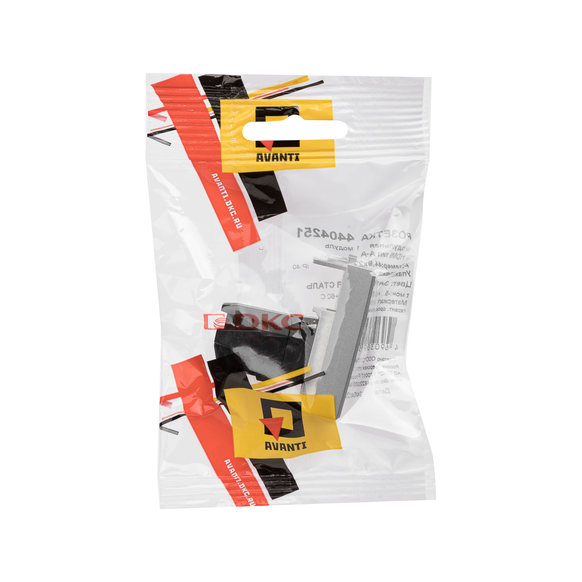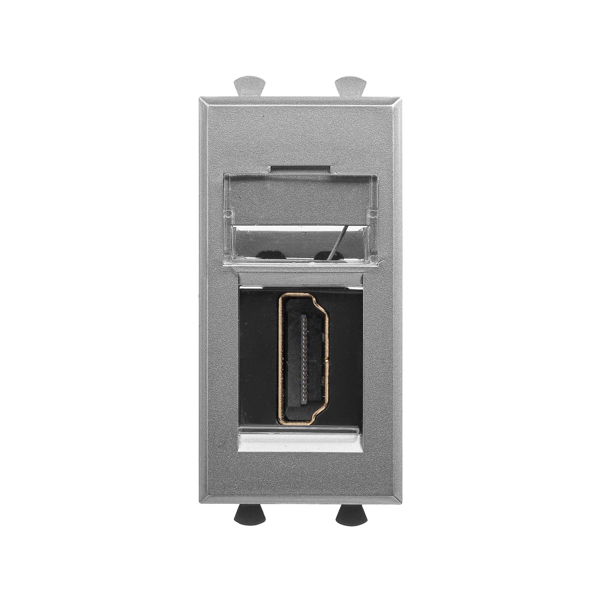 HDMI розетка модульная. Назначение: для монтажа в системы "In-liner Front" и "In-liner Aero" при помощи рамок-суппортов и каркасов "Avanti" (код 4400912 и т.д.); подключение HDMI кабеля к рабочему месту. Характеристики: с пылезащитной шторкой; с маркировочной табличкой; в комплекте разъем Keystone; для заделки контактов используется инструмент типа 110; тип розетки – "А-А" или "мама-мама"; фиксация в подрозеточные коробки глубиной не менее 45 мм при помощи каркаса с лапками (код 4400802) и саморезов. Кол-во модулей: 1. Цвет: "Закаленная сталь"