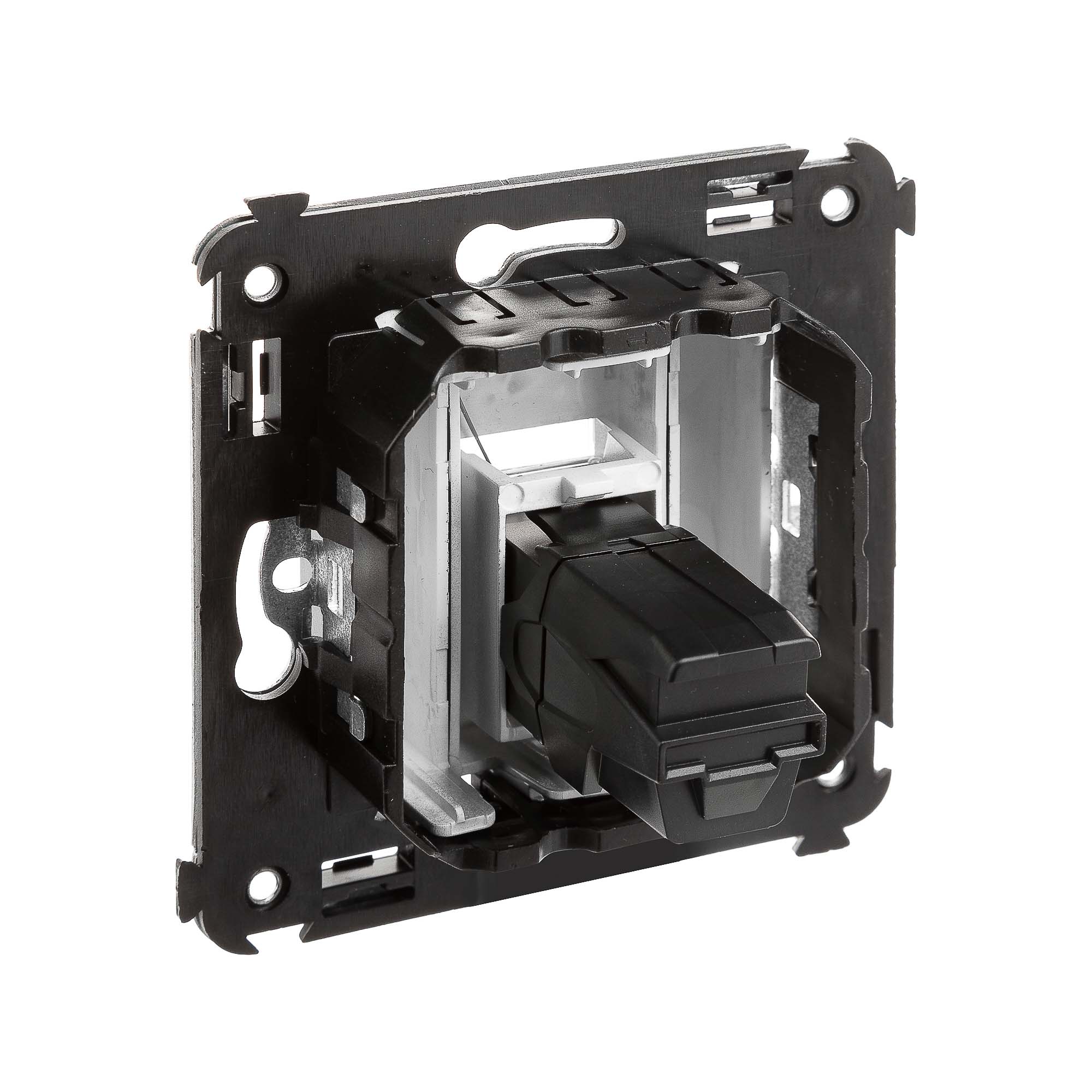 USB 2.0 розетка. Назначение: для монтажа в подрозеточные коробки глубиной не менее 45 мм (код 59301). Используется в качестве информационной розетки для передачи сигнала (подключение проекторов, мониторов и др.). Цвет: "Закаленная сталь".