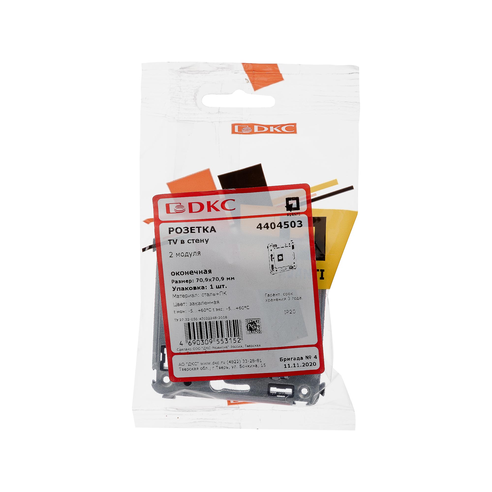 Одиночные телевизионные розетки предназначены для скрытой установки в стенах и применяются для подключения телевизионного кабеля. TV-розетки производства ДКС рассчитаны на частоту до 2400 Гц. Материал – металл, пластик. Цвет: "Закаленная сталь". Количество модулей в изделии – 2.