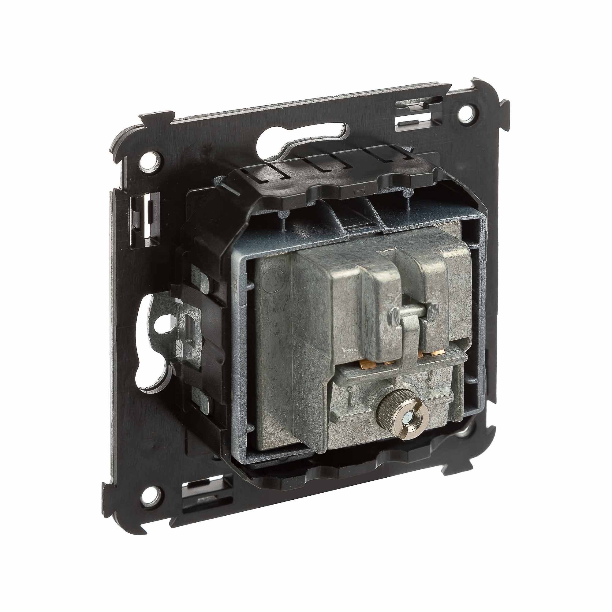 Розетка TV - FM - SAT. Назначение: для монтажа в подрозеточные коробки глубиной не менее 45 мм (код 59301);. Предназначена для подключения телевизионного, спутникового телевизионного и радио - кабеля к телевизору. Характеристики: винтовые зажимы; диапазон рабочих частот 4–2400 МГц; затухание