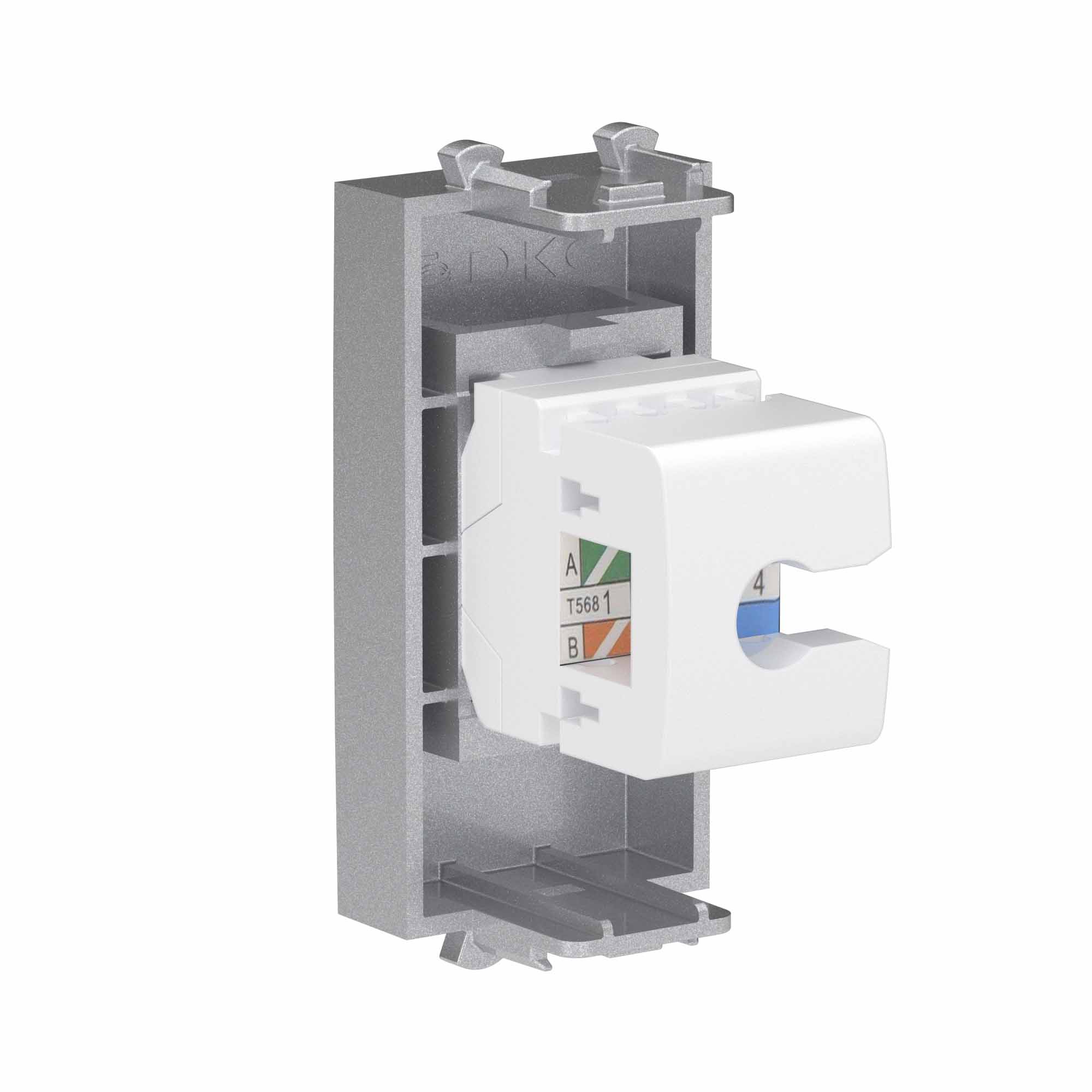 Телефонная розетка RJ - 12 модульная без шторки. Предназначена для комплектации систем организации рабочих мест (кабель - каналов, лючков, башенок, колонн) при помощи рамок - суппортов и каркасов "Avanti" (код 4400912 и т.д.). Служит для подключения телефонного кабеля к рабочему месту. 6P6C. В комплекте разъем Keystone. Для заделки контактов используется инструмент типа 110. Фиксация в подрозеточные коробки глубиной не менее 45 мм производится при помощи каркаса с лапками (код 4400802) и саморезов. 1 модуль. Цвет: "Закаленная сталь".
