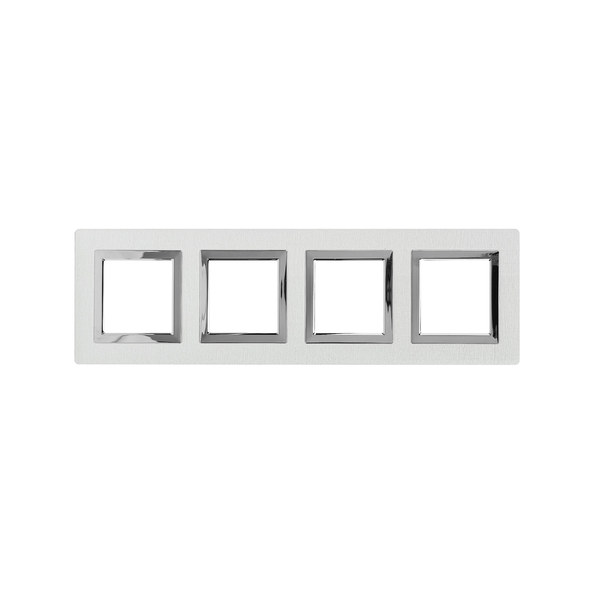 Светлая рамка из алюминия для настенного монтажа. Назначение: декоративное оформление серии "Avanti"; монтаж в стену на каркас ЭУИ "Avanti" (код 4400802). Дизайн разработан B. DallEcco. Материал – алюминий. Фактура – браш. Кол-во модулей: 8