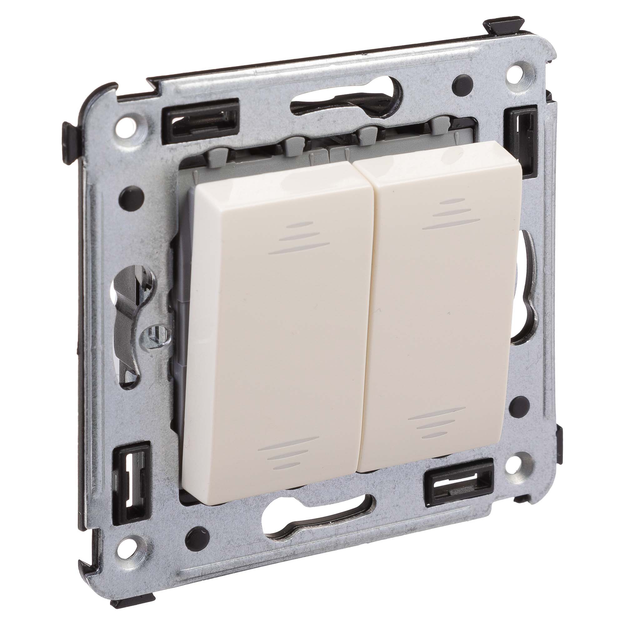 Задача двухклавишного переключателя – управление двумя контурами освещения из двух точек. Он позволяет включить/выключить свет из удобной точки – например, в спальне переключатель может размещаться возле кровати. Переключатель предназначен для скрытого монтажа в стену. Номинальное напряжение – 230 В, номинальный ток – 16 А. Материал: металл, термопласт. Цветовое решение пластиковых элементов – "Ванильная дымка". Это теплый, уютный оттенок бежевого. Для декоративного оформления может быть подобрана рамка "в цвет" или же контрастного оттенка. Лучше всего изделие сочетается со светлыми и пастельными оттенками.