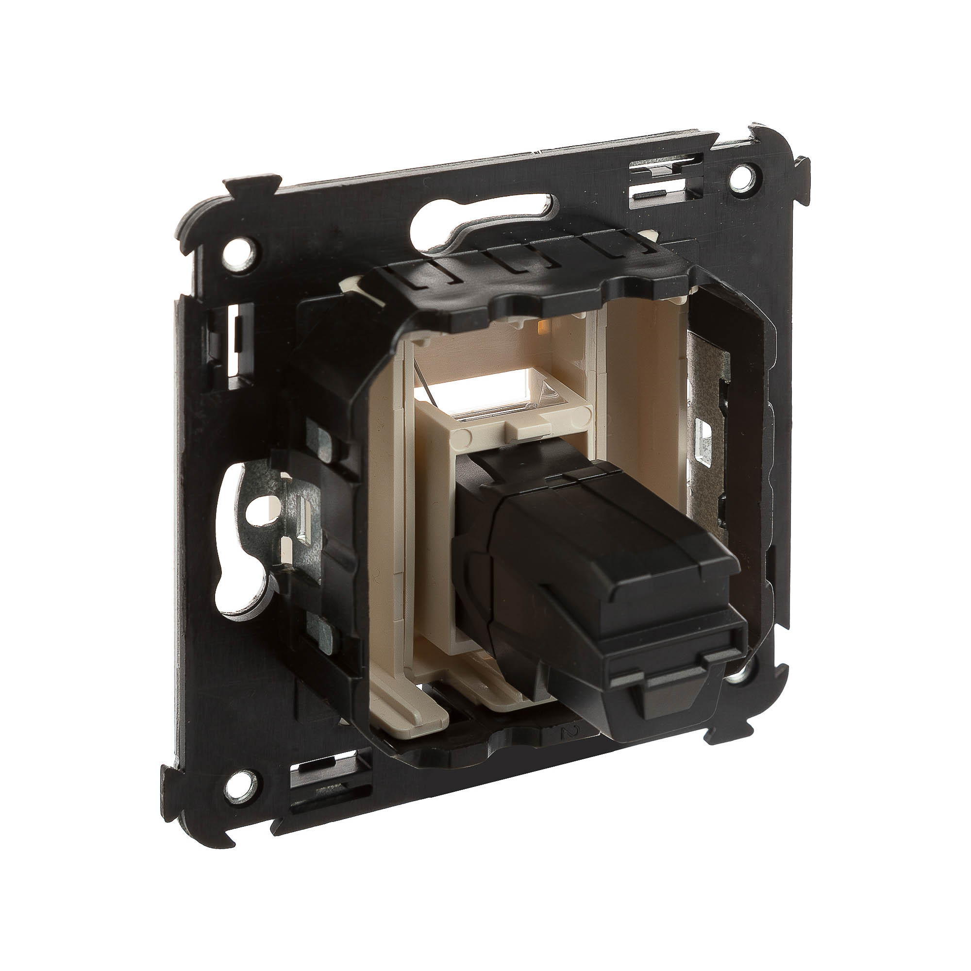 HDMI - розетка. Назначение: для монтажа в подрозеточные коробки глубиной не менее 45 мм (код 59301). Используется в качестве мультимедийной розетки для передачи сигнала (подключение проекторов, мониторов, телевизоров и др.). Характеристики: 1 модуль, с пылезащитной шторкой; с маркировочной табличкой; в комплекте разъем Keystone; для заделки контактов используется инструмент типа 110; тип розетки – "А - А" или "мама - мама"; фиксация в подрозеточные коробки глубиной не менее 45 мм при помощи каркаса с лапками (код 4400802) и саморезов. Цвет: "Ванильная дымка".