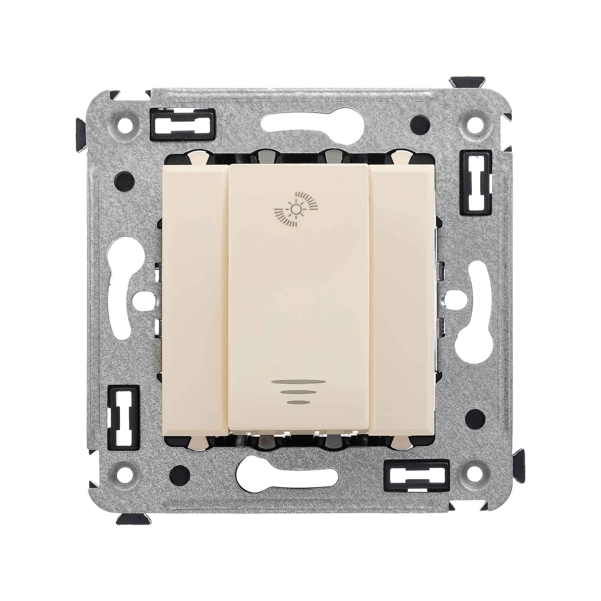 Диммеры предназначены для управления контуром освещения и регулировки интенсивности освещения помещения. Регулирование регулирование 3–120 Вт для LED ламп, регулирование 3–220 Вт для ламп накаливания и галогенных ламп. Диммирование по переднему и заднему фронту. Выбор режима включения освещения (плавный пуск). Применяются для скрытой установки в стену, механизмы поставляются в комплекте с суппортом. Пластиковые детали электроустановочного изделия имеют оттенок "Ванильная дымка".