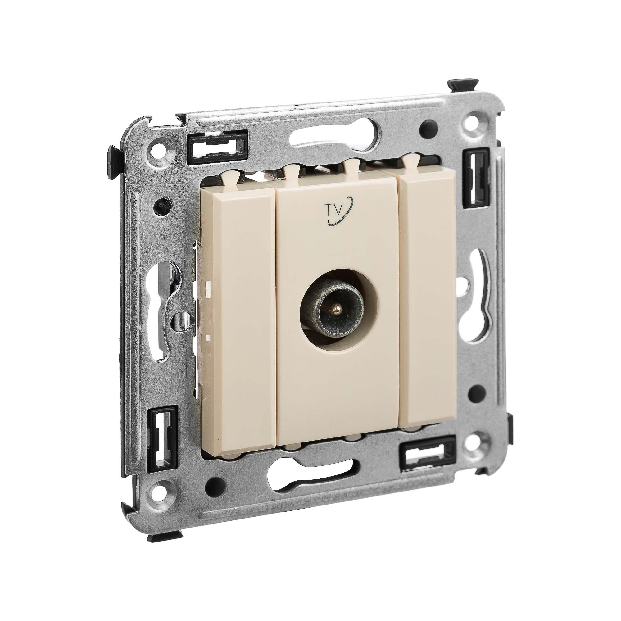 Проходные телевизионные розетки предназначены для скрытой установки в стенах, поставляются в комплекте с суппортом. Применяются для подключения телевизионного кабеля. TV - розетки производства ДКС рассчитаны на частоту до 2400 Гц. Материал – металл, пластик. 2 модуля. Пластиковые детали имеют цвет "Ванильная дымка".