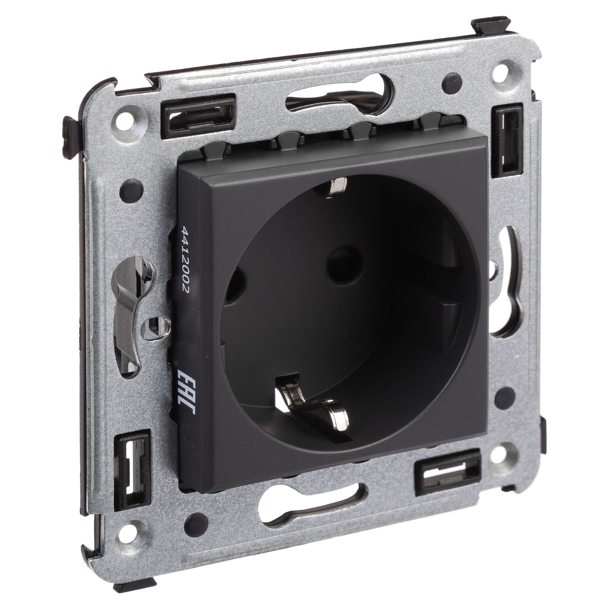 4412003 | Розетка в стену, 2P+E, с з/ш, Avanti, Черный матовый