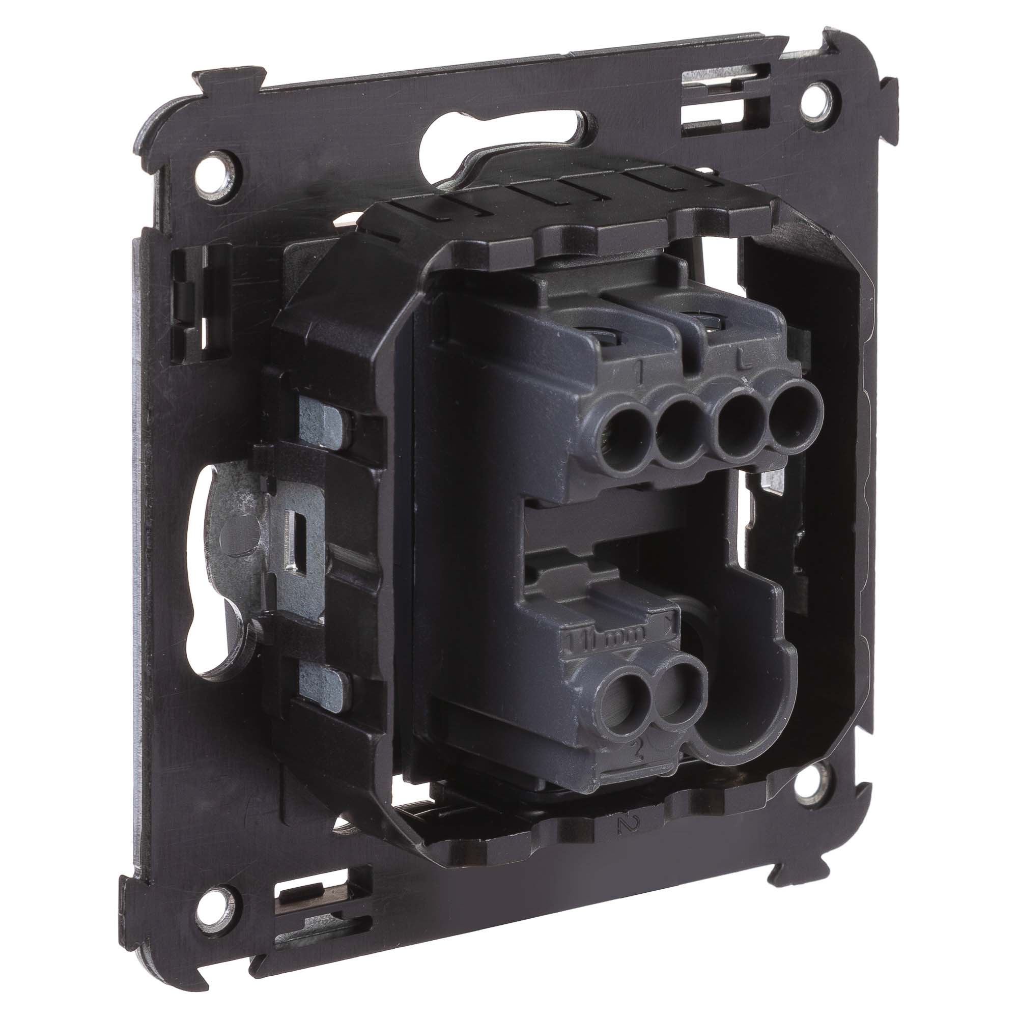 Выключатель однополюсный для монтажа в стену серии "Avanti". Предназначен для монтажа в подрозеточные коробки (код 59301), включения/выключения освещения. Диаметр отверстий для ввода кабелей – 3 мм (по 2 отверстия на одну клемму); винтовые зажимы; фиксация в подрозеточную коробку при помощи саморезов. Шаблон для зачистки кабеля – 11 мм; номинальный ток – 16 A; номинальное напряжение – 230 В. 2 модуля. Цвет: "Черный матовый".