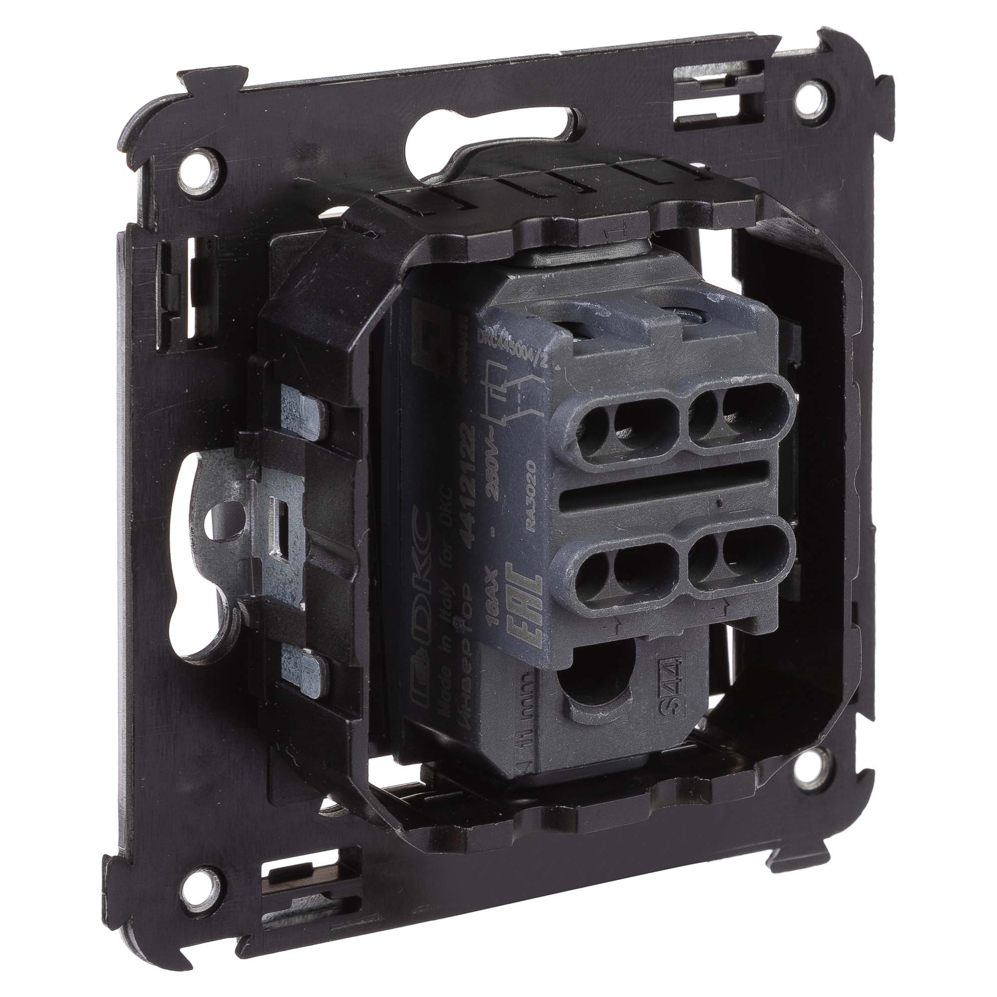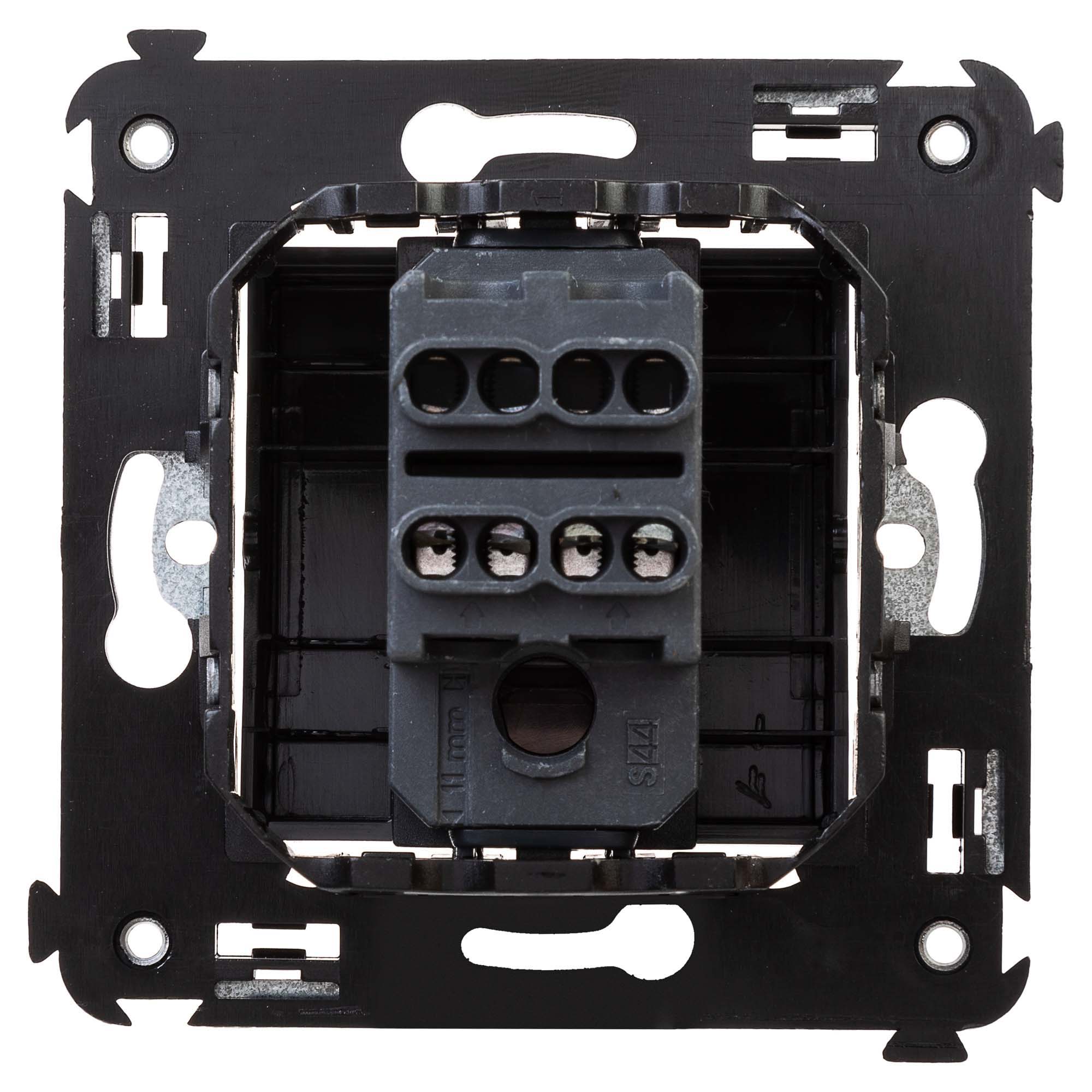 Инвертор однополюсный для монтажа в стену. Предназначен для монтажа в подрозеточные коробки (код 59301). Используется для включения/выключения освещения с трех и более мест. Диаметр отверстий для ввода кабелей – 3 мм (по 2 отверстия на одну клемму); винтовые зажимы; фиксация в подрозеточную коробку при помощи саморезов. Шаблон для зачистки кабеля – 11 мм. Номинальный ток – 16 A. Номинальное напряжение – 230 В. 2 модуля. Цвет: "Черный матовый".