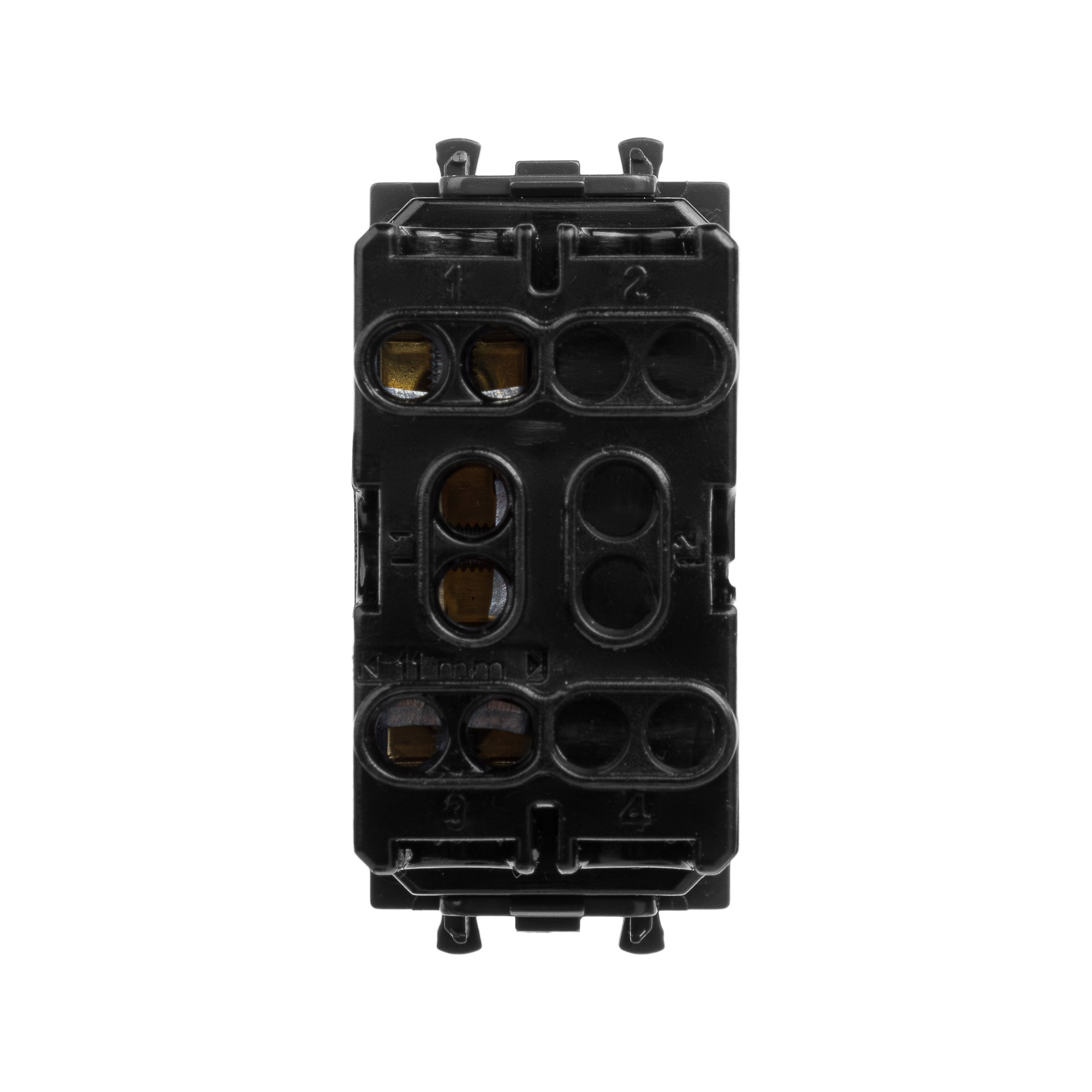 Механизм управления рольставнями модульный. Назначение: для монтажа в системы "In - liner Front" и "In - liner Aero" при помощи рамок - суппортов и каркасов "Avanti" (код 4400912 и т.д.); управление приводом рольставней. Характеристики: номинальное напряжение – 230 В; управление рольставнями и шторами; диаметр отверстий для ввода кабелей – 3 мм; винтовые зажимы; шаблон для зачистки кабеля – 11 мм. Фиксация производится в подрозеточные коробки глубиной не менее 45 мм при помощи каркаса с лапками (код 4400802) и саморезов. 1 модуль. Цвет: "Черный матовый".