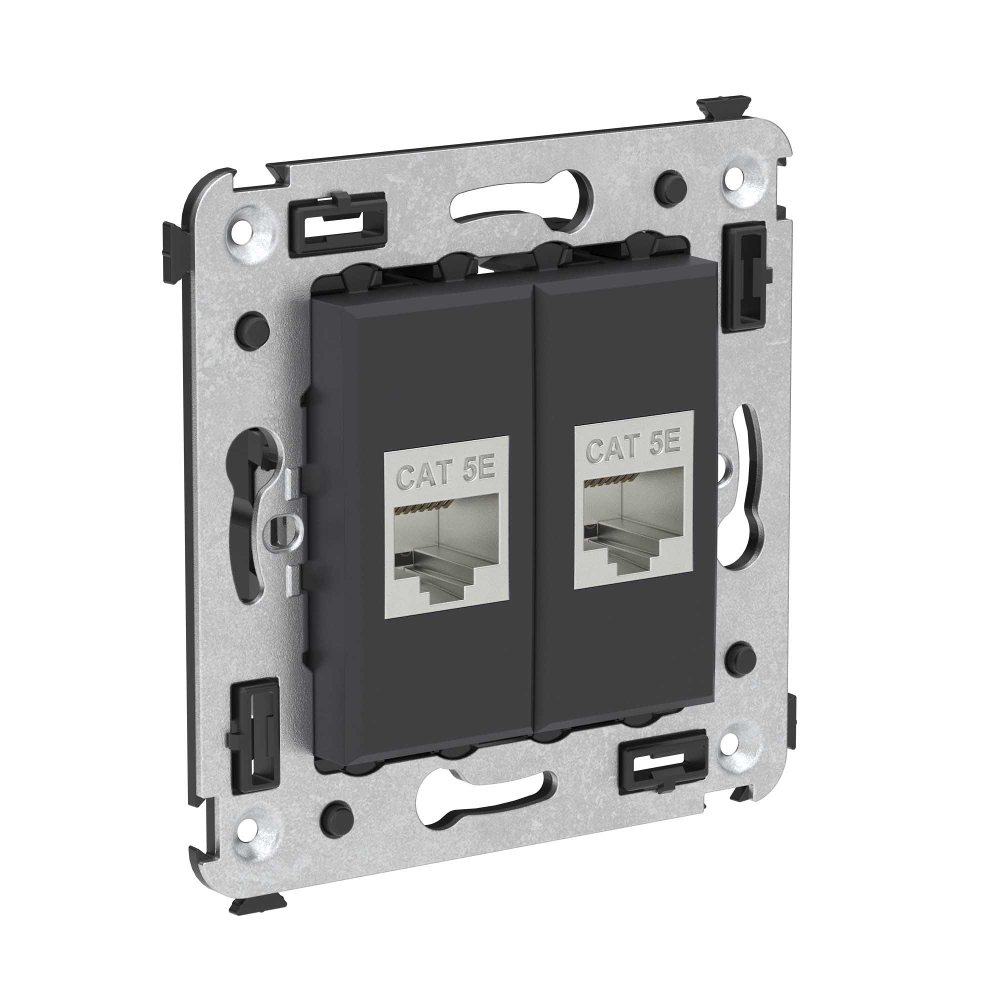 4412764 | Компьютерная розетка RJ-45 без шторки в стену, кат.5e двойная экранированная, "Avanti", "Черный матовый"