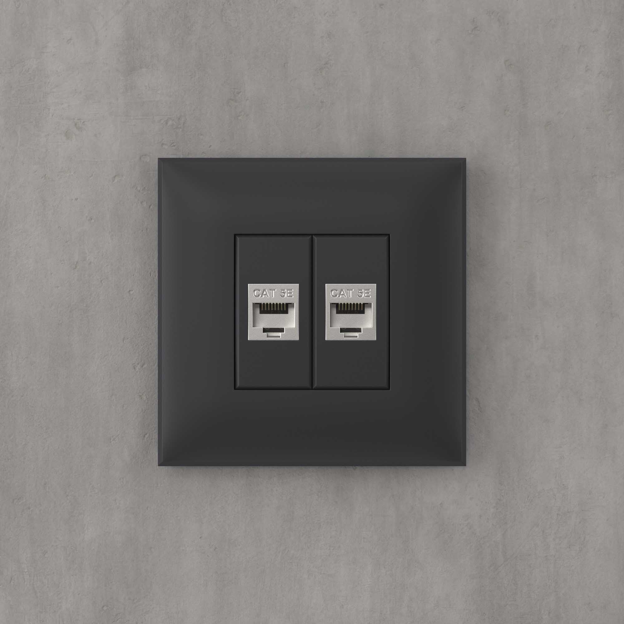 Компьютерная розетка двойная экранированная без шторки используется для подключения компьютерной техники и соединения с патч - панелью. Компьютерная розетка предназначена для скрытого монтажа в стену, поставляется в комплекте с суппортом. Розетка RJ - 45 категории 5e – это наиболее популярная на сегодняшний день модель. Она позволяет организовать сеть с частотой 125 МГц и скоростью до 1000 Мбит/с. Материал – металл, термопласт. Пластиковые детали устройства имеют оттенок "Черный матовый".