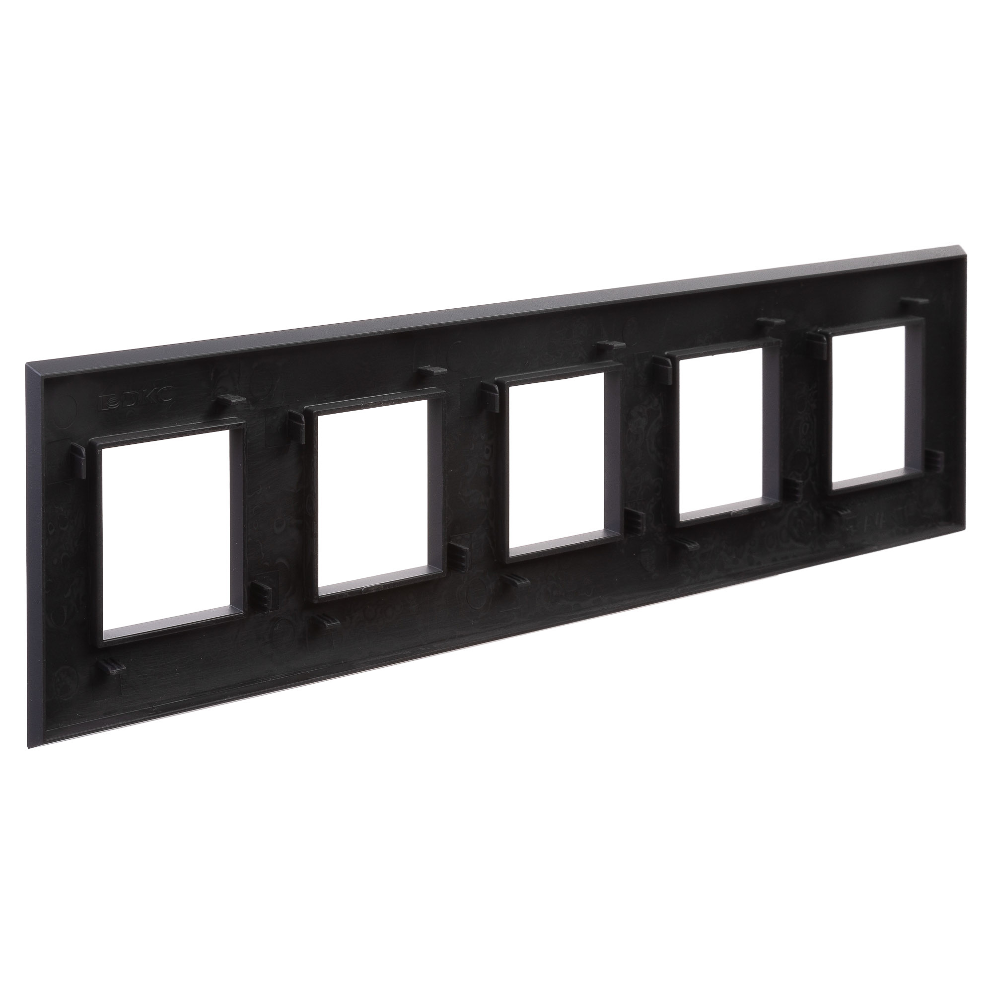 Рамки ДКС, разработанные студией Артемия Лебедева, предназначены для декоративного оформления электроустановочных изделий. Цвет рамки: "Черный матовый" - темный, манящий, приглушающий свет акцент. Отсутствие следов от прикосновений на поверхности изделий дает ощущение премиального вида в интерьере. Линейка сочетается с текстурными сдержанными покрытиями, интерьерами в различных стилях от минимализма и контемпорари до арт - деко и гранж, на стенах из необработанного кирпича в помещениях лофт. В рамке предусмотрено 5 постов под ЭУИ (10 модулей). Рамка может быть размещена как горизонтально, так и вертикально. Габаритные размеры: 375х90 мм. Материал – термопласт.