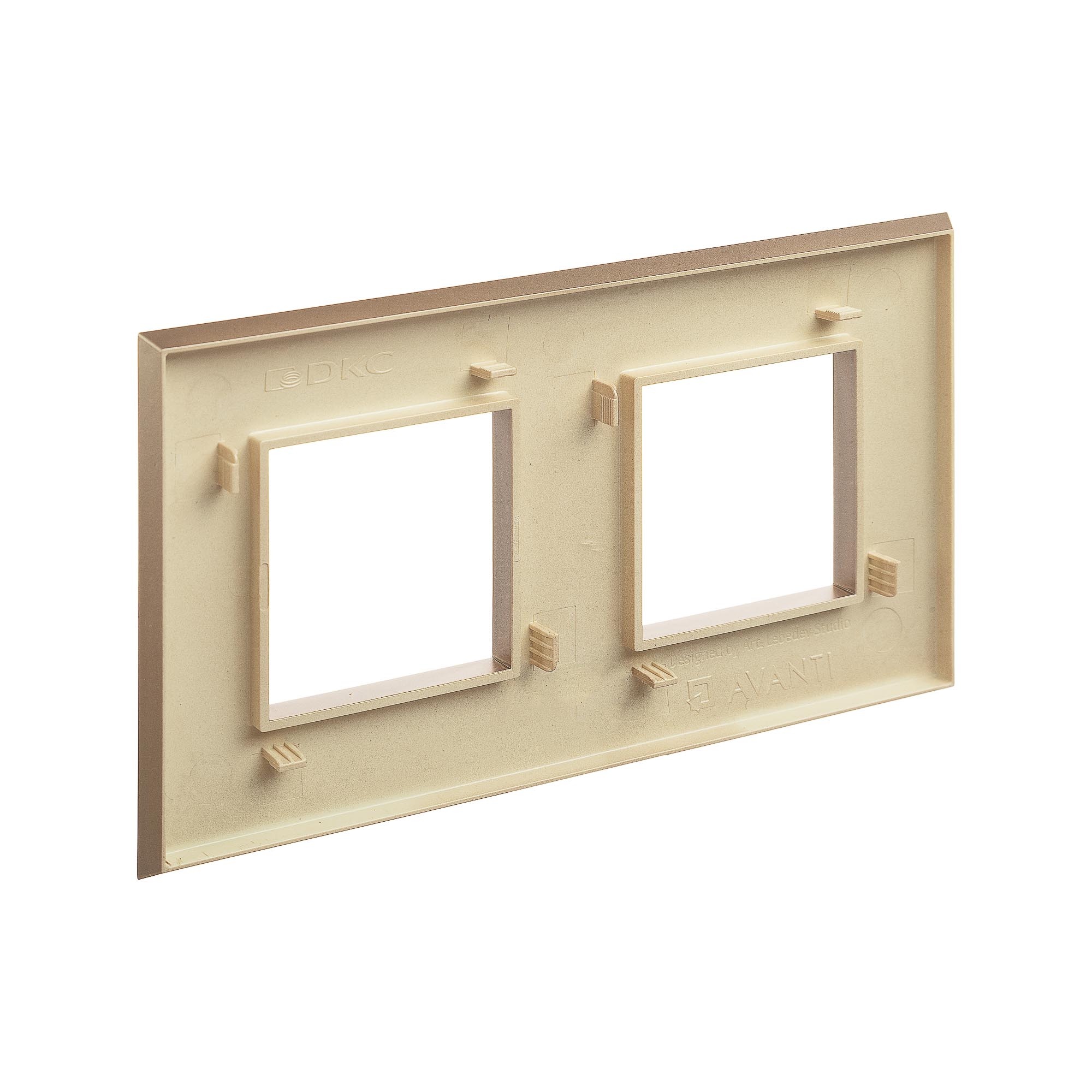 Рамки ДКС, разработанные студией Артемия Лебедева, предназначены для декоративного оформления электроустановочных изделий. Цвет рамки: "Кремовый жемчуг" - нежный оттенок, переливающийся, словно натуральный жемчуг. Его мягкость, совершенство и сдержанная красота притягивают внимание и свидетельствует о тонком вкусе владельца. В рамке предусмотрено 2 поста под ЭУИ (4 модуля). Рамка может быть размещена как горизонтально, так и вертикально. Габаритные размеры: 160х90 мм. Материал – термопласт.