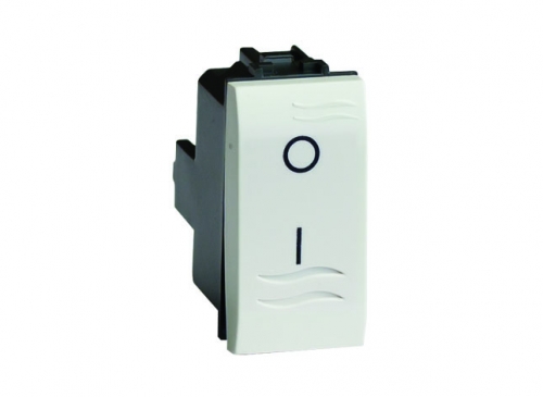 Выключатель двухполюсный. Назначение: включение/выключение освещения. Характеристики: номинальный ток − 16 А; номинальное напряжение − 250 B. Кол-во модулей: 1. Цвет: слоновая кость.