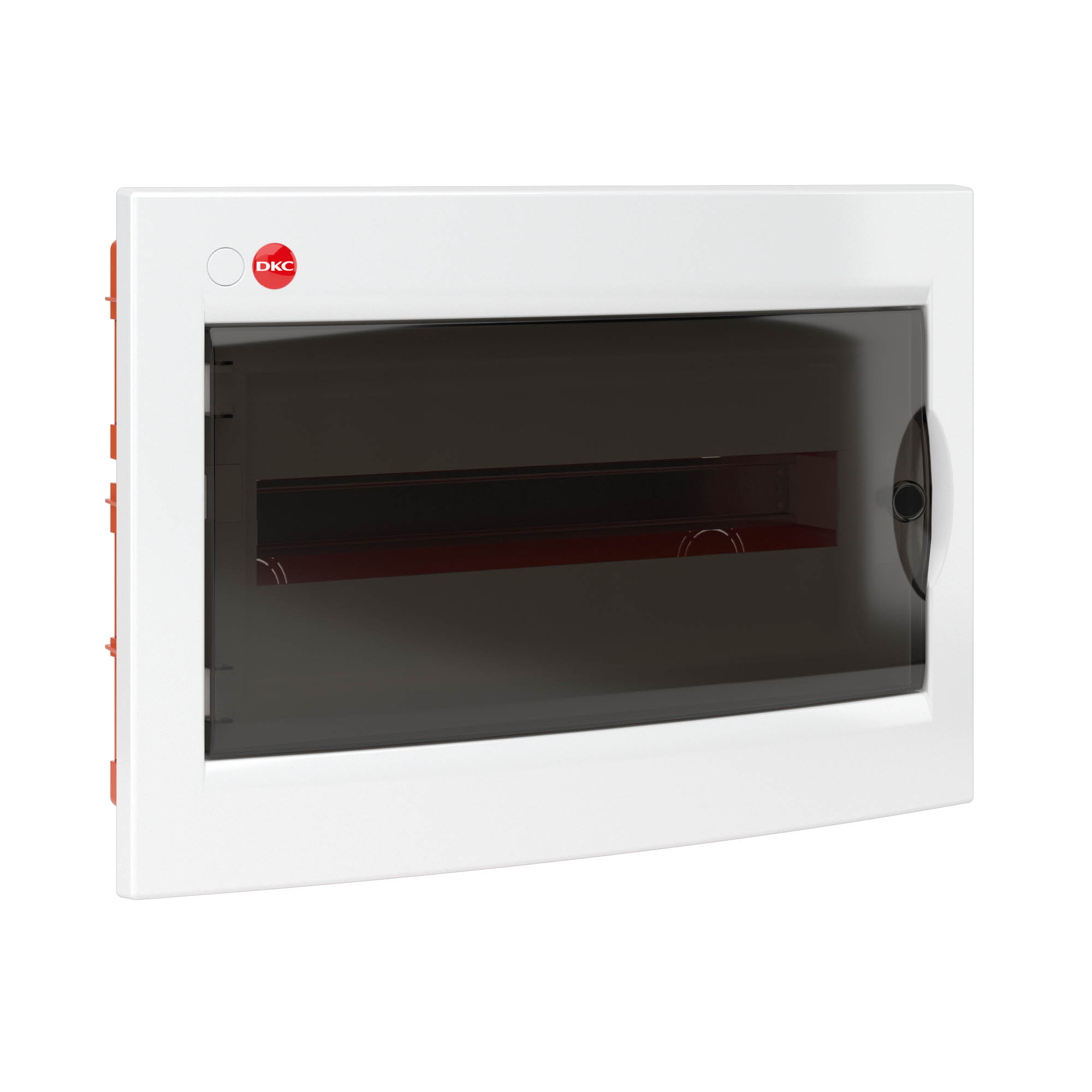 Встраиваемый распределительный щиток ДКС предназначен для монтажа в жилых и административных помещениях для установки автоматических выключателей любых производителей: таймеров, устройств защитного отключения и управления освещением и т.д. Щиток имеет оцинкованную DIN-рейку и суппорт, заглушки для пустых модулей, сборочные винты и заглушки для них, самоклеящуюся этикетку для маркировки цепей. Преперфорированные отверстия и насечки на задней стенке обеспечивают точное соединение с пластиковыми трубами и обеспечивают легкий монтаж. Клеммный блок 87518 в комплекте с крепежом, для коммутации питающих линий, жил проводов и кабелей. Дверца выполнена из затемненного полупрозрачного пластика. Специальная конструкция петель дает возможность открывать дверцу более чем на 180°. Замок для дверцы 87188, в комплекте с ключами. Степень пыле-и влагозащиты IP 41. Количество модулей-18. Параметры щитка: ширина-411 мм, высота-300 мм, глубина встраиваемой части-77 мм. Материал-термостойкий и ударопрочный пластик. Цвет-белый.