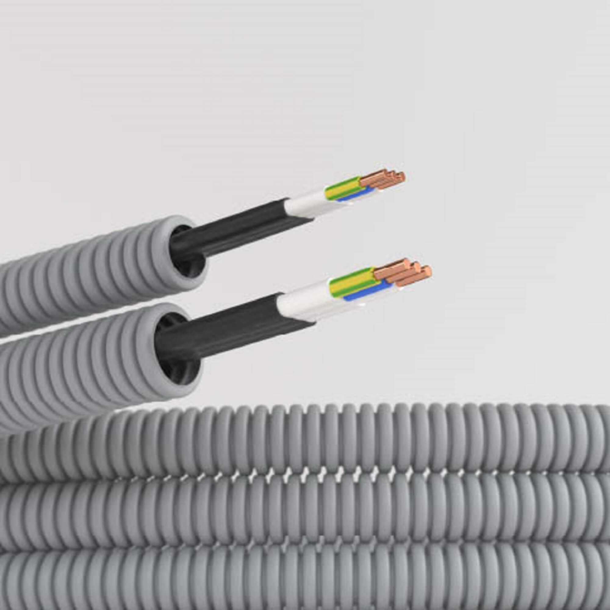 Электротехнические гибкие гофрированные трубы из ПВХ используются для прокладки кабельных коммуникаций в стенных штробах, в пустотах фальш - потолков и фальш - стен, в стяжке полов или под фальш - полами. Трубы могут применяться при монолитном строительстве, прокладываться на производственных предприятиях, в коммерческой недвижимости и индивидуальном строительстве. Электротруба - это гофрированная труба с уже протянутым внутри кабелем ВВГ - Пнг(А) - LS3х2,5мм² Конкорд. Такое решение значительно сокращает время монтажа и предупреждает возможное повреждение кабеля при протяжке. Материал - ПВХ. Диаметр трубы - 20 мм. Цвет - серый.